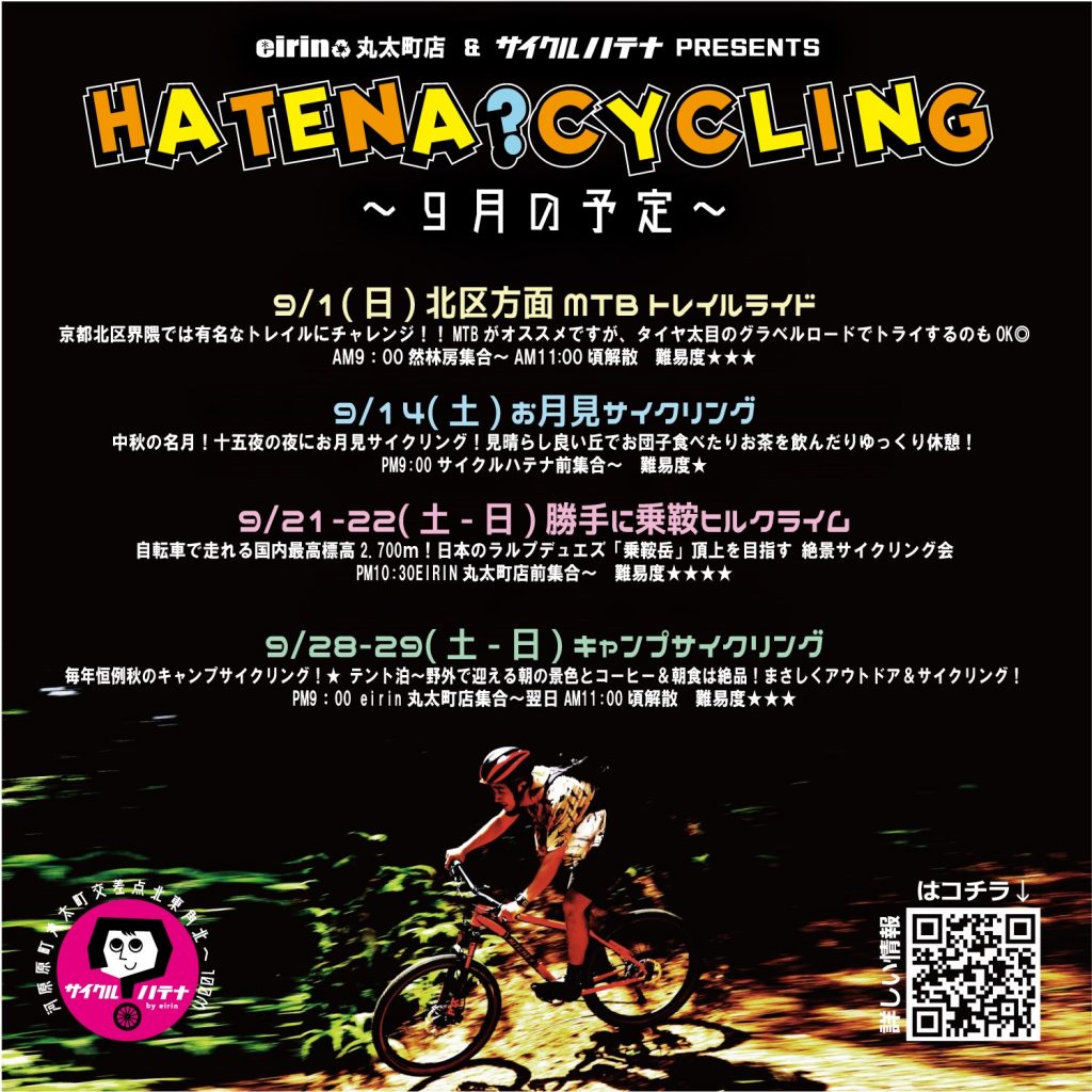 ★eirin丸太町店&サイクルハテナ主催★【HATENA? CYCLING/ハテナサイクリング】 2019年9月の予定 & メンテナンス講習会の 御案内です!