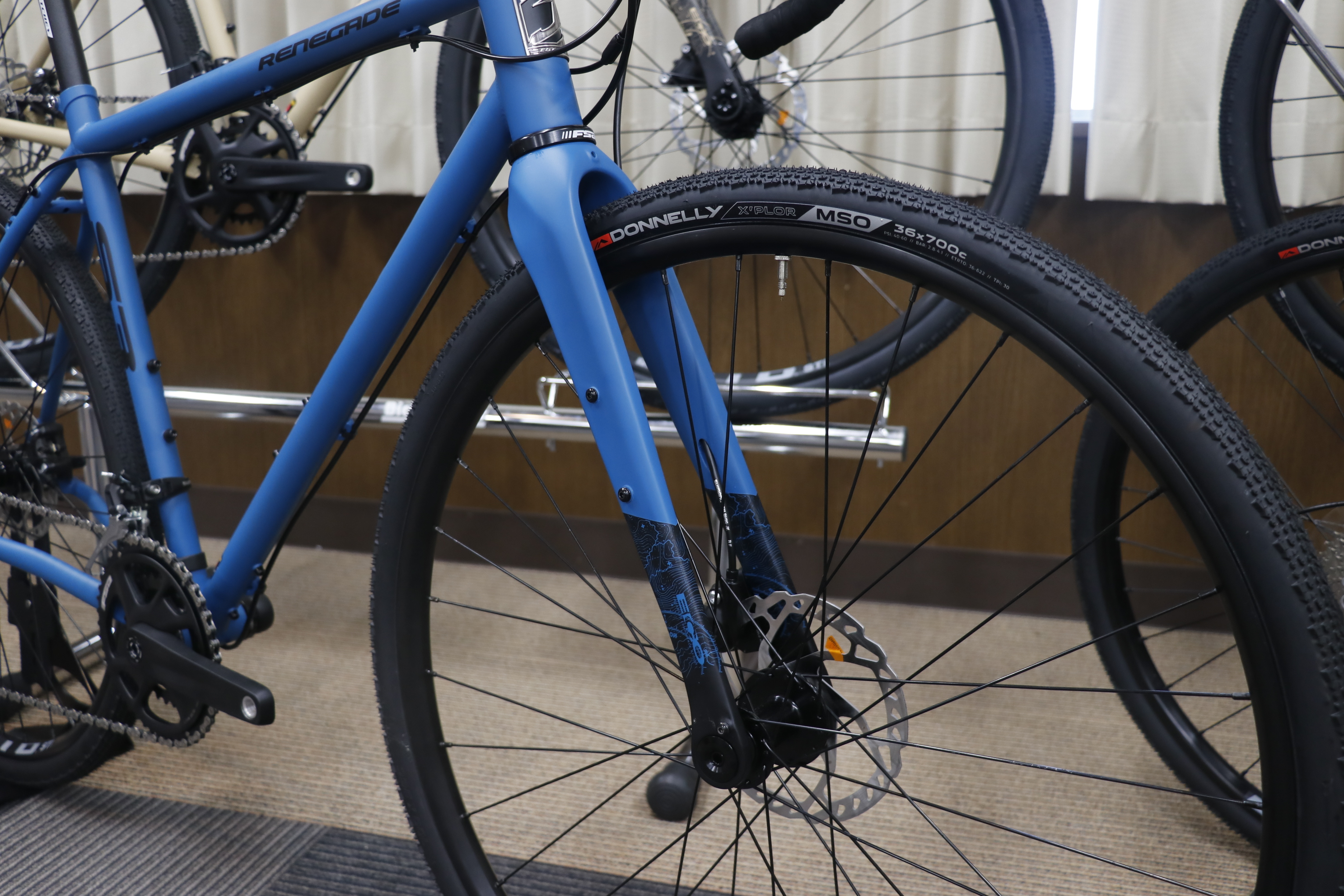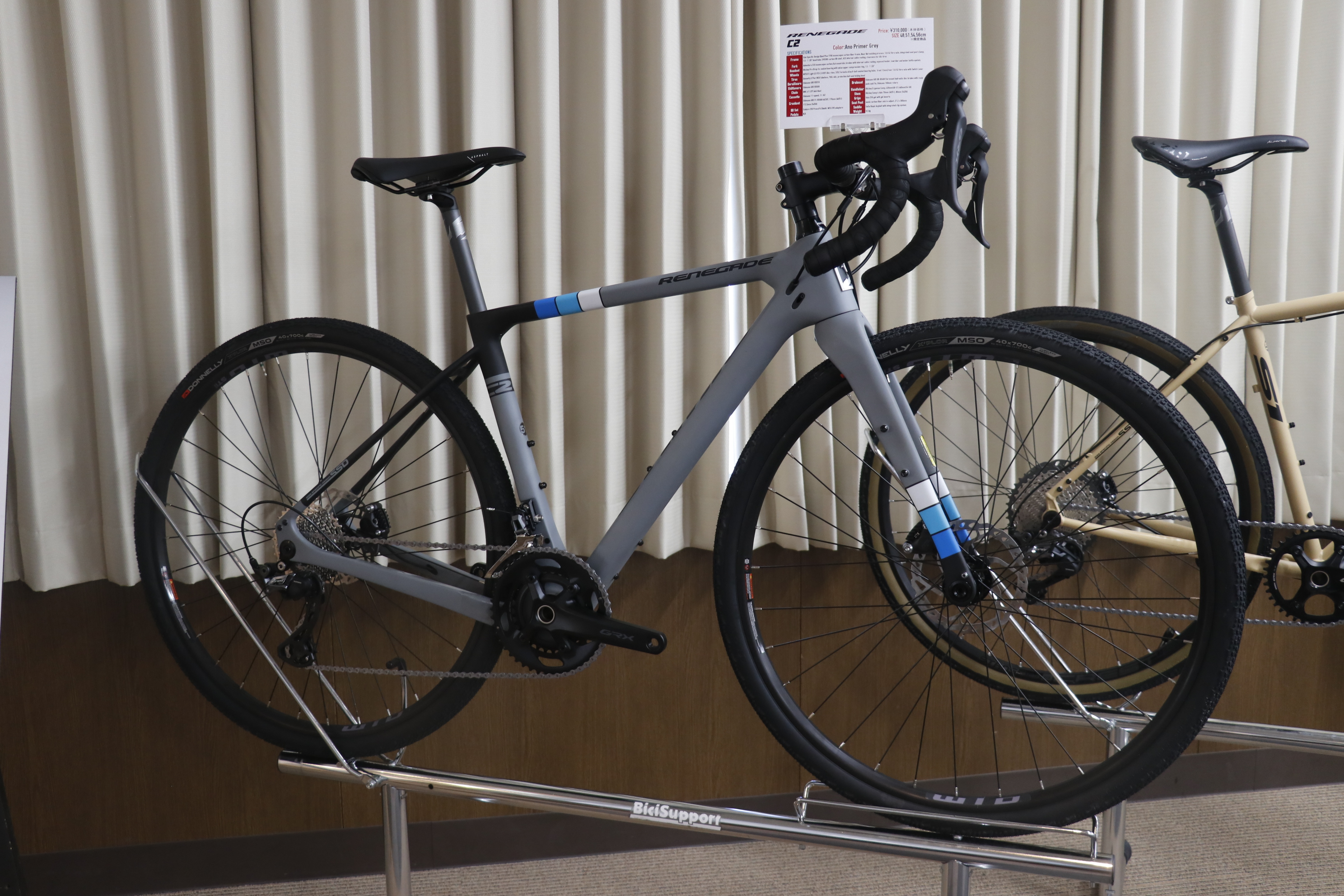 特にNEWモデルとなる、前後スルーアクスル採用クロモリフレーム+フルカーボンフォークをベースに、新型のグラベルコンポ「GRX400 2×10スピード 油圧ディスクブレーキ」搭載で定価¥178,000(税別)のRENEGADE S3は抜群のコストパフォーマンス。