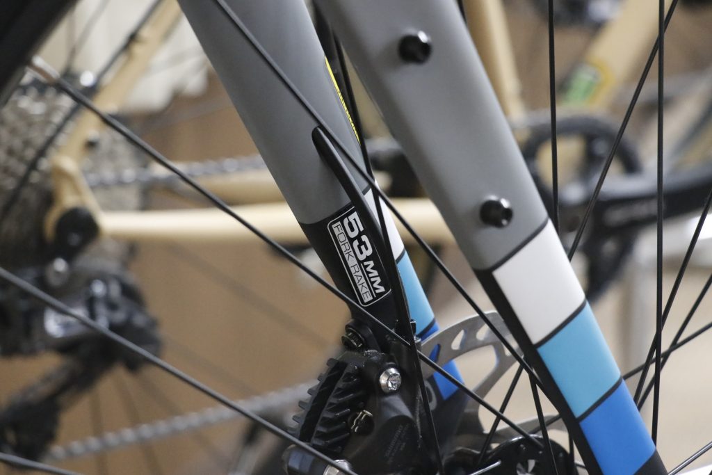 表記の通り、フォークレイク(フォークオフセット)は53mmと安定感重視。