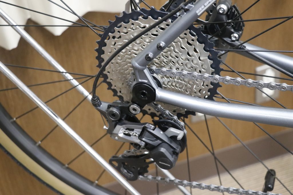 フロントダブルのワイドレシオなので、荷物満載で行く自転車旅行にもオススメしたいモデルです。