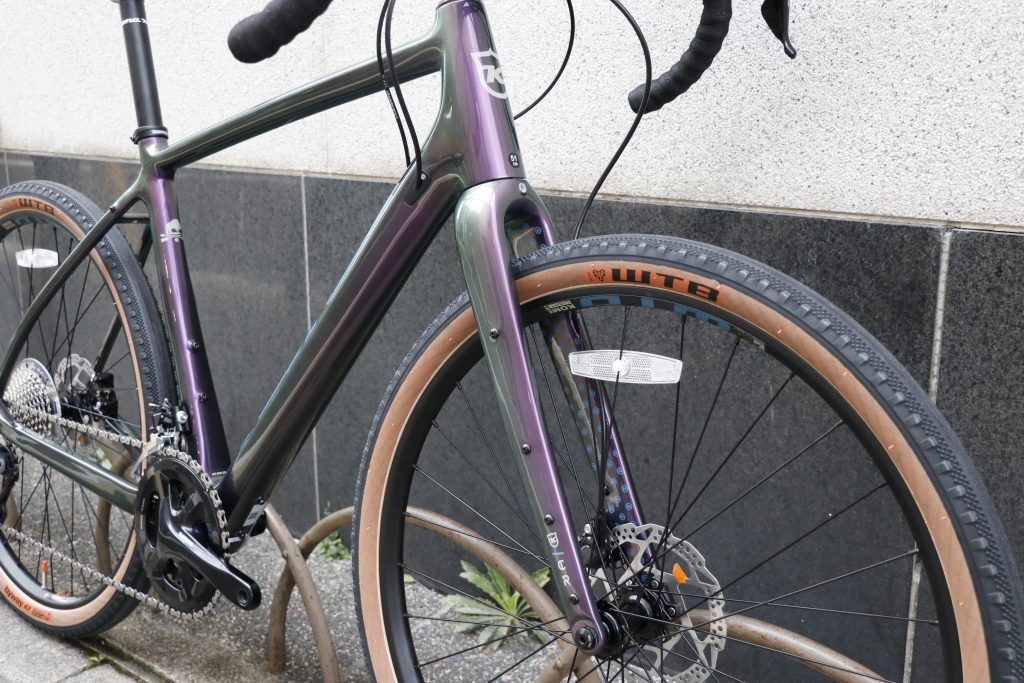 巷に出揃うピュアなグラベルロードよりも、ダート含めたアドベンチャーライドやロングツーリングに最適な長めのヘッドチューブ長から更にアップライトな乗車姿勢を可能とし、フルカーボンの軽さ&高い剛性といった特性を活かした絶妙なジオメトリーを採用しております。