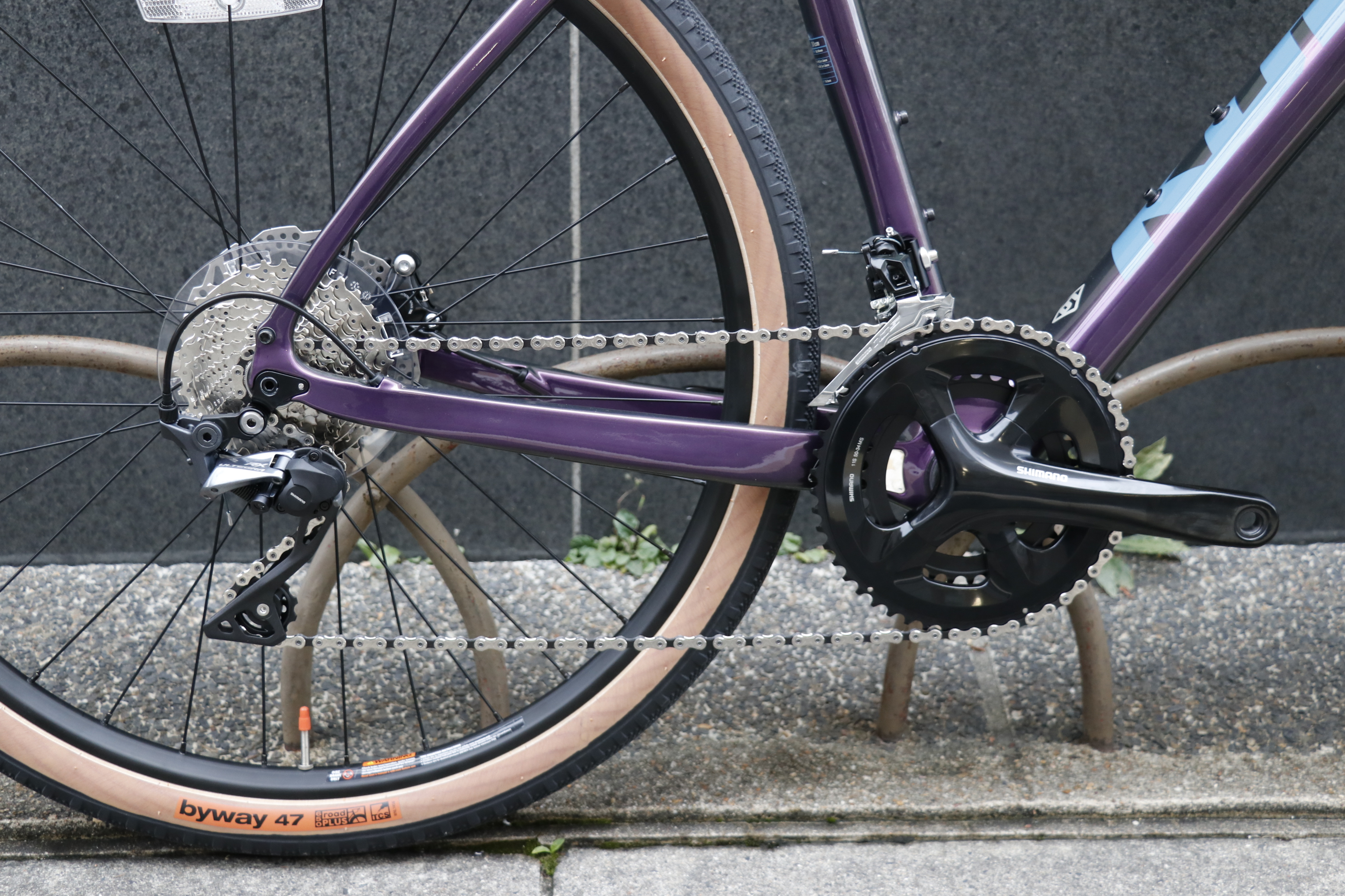 2019年モデルでは、タイヤのトップ面はスリック、サイドは低めのブロックパターンが採用されオンロードの快適性とグラベルライドの走破性にバランスよく対応する「WTB Byway TCS 650x47cロードプラスタイヤ」が採用。
