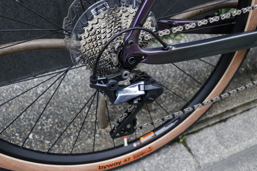 操作上使用頻度の高いリアディレーラーには、グラベルライドにおけるチェーントラブル防止策「スタビライザー」を採用したより高いグレードのULTEGRA RXが採用。