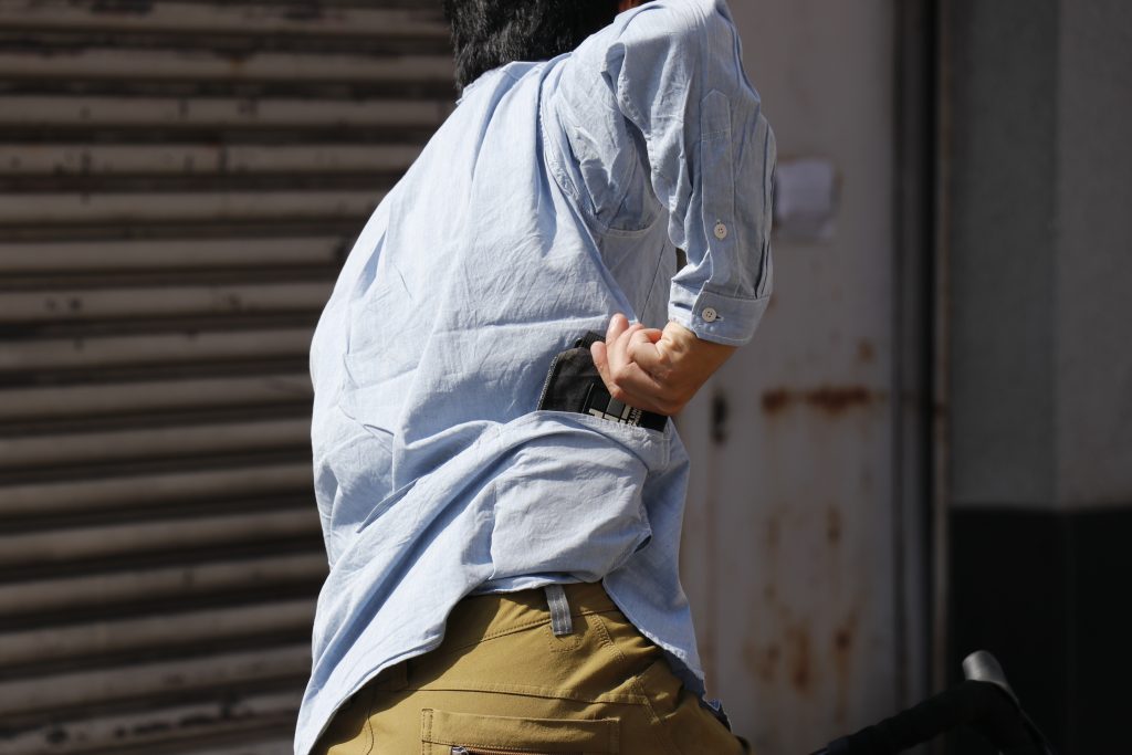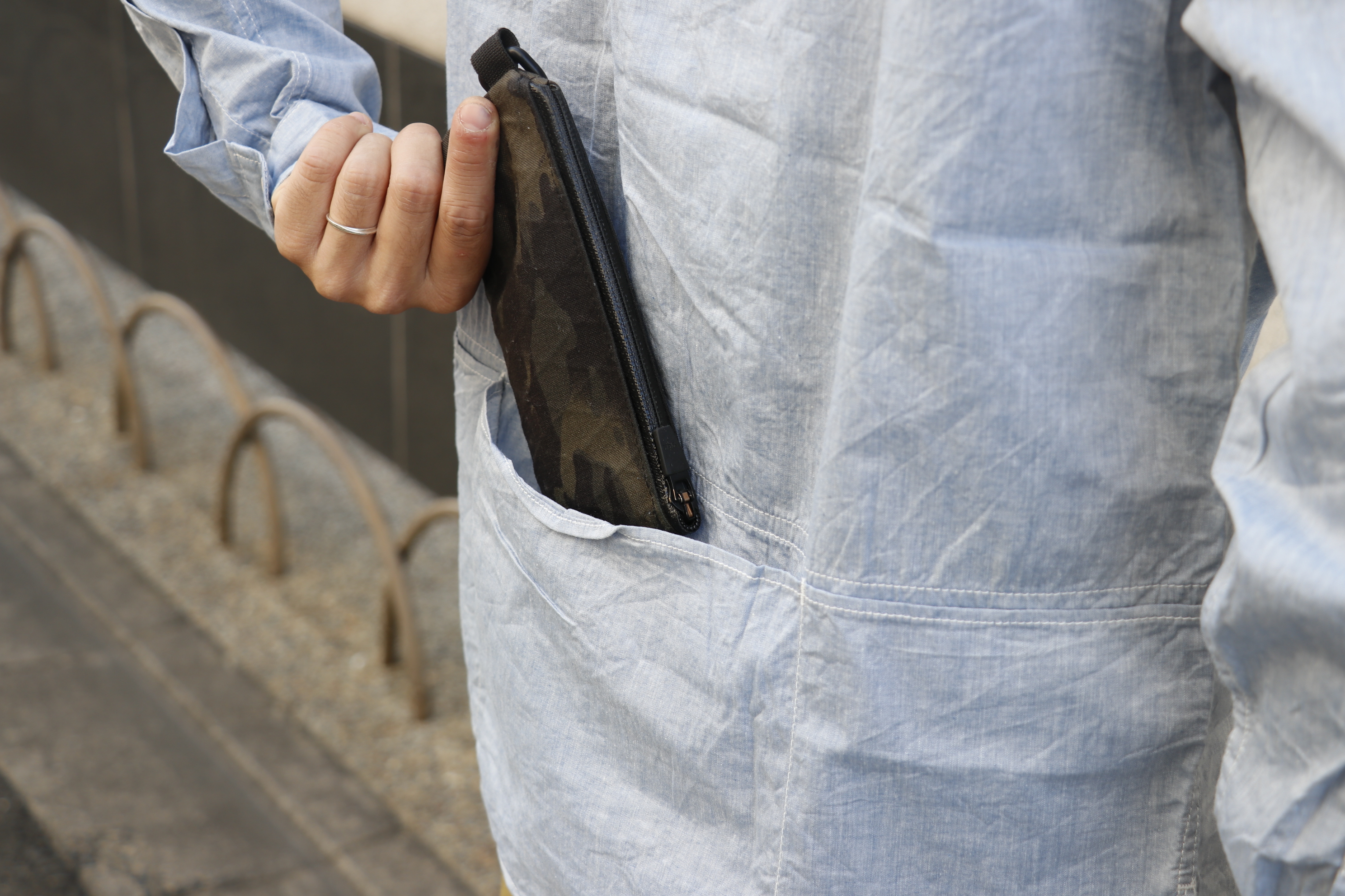 薄手のシャンブレー生地ではありますが、鍵やスマートフォンなど頻繁に出し入れを行うアイテムを入れておくにはとても便利です。