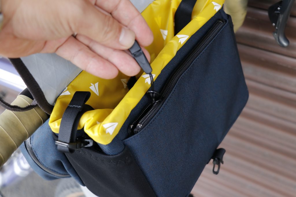 実は本アイテムが正式にローンチされたのは実は当店が主催した美山100kmサイクリングの時。当日はなかなかの大雨でしたが、上記配慮も大きく影響しているのでしょう。中の荷物の浸水は最小限に抑えられていたとの事です。
