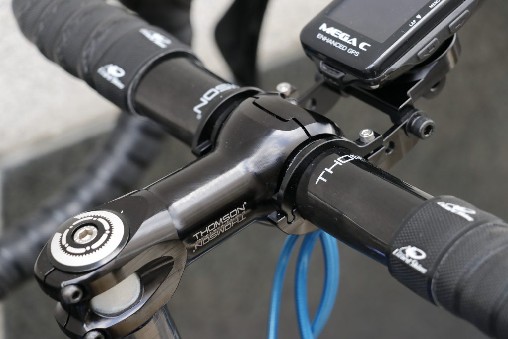 カーボンハンドルにする事で軽さと乗り心地にも気を使ったアッセンブルが距離を乗るのが好きな高田くんらしいアッセンブル。