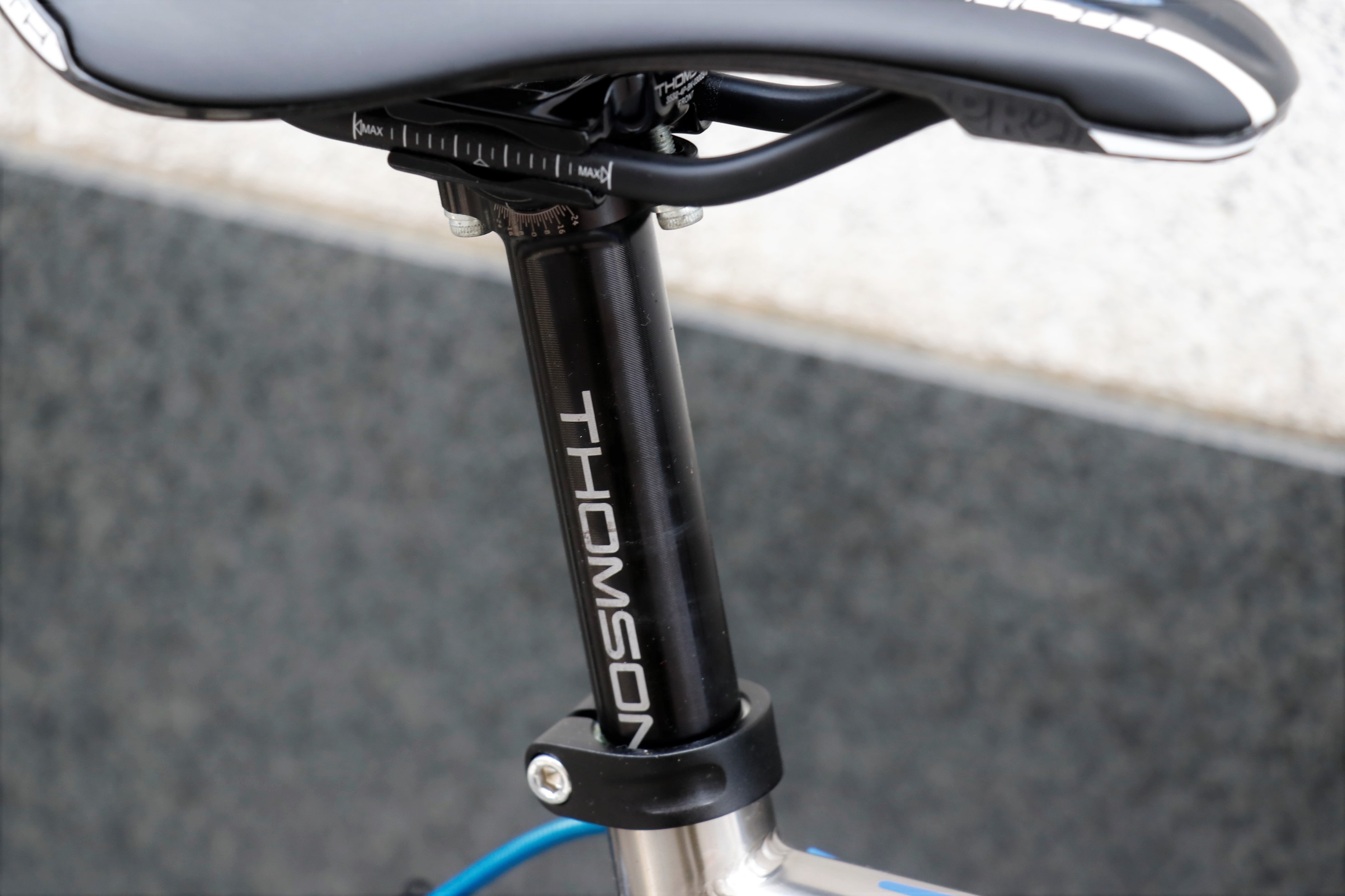 ボリュームを抑えた線の細い3AL2.5Vチタン合金チューブのフレームは見た目の美しさだけでなく、乗り心地はシルキーそのもの。