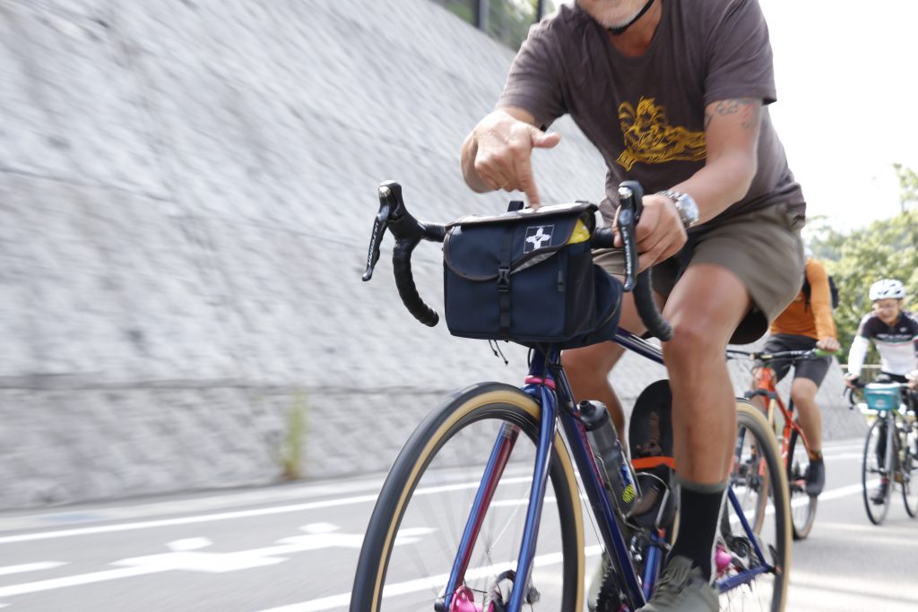 ロードバイクのドロップハンドルの横幅にもスッキリと収まり、STIレバーの動きも邪魔しません。