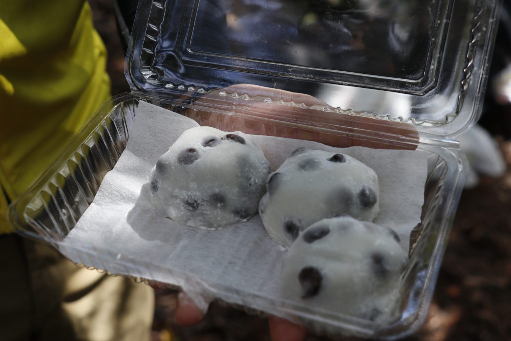 頂上ではお待ちかねのコーヒー&ふたばの豆餅タイム~ 疲れた体に染みわたります。