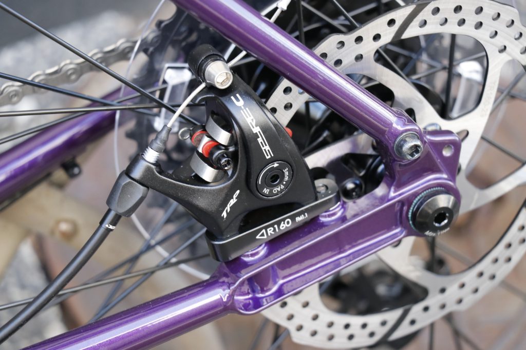 ブレーキはフラットマウント規格の『TRP SPYRE』。フラットマウント規格によるスッキリとしたデザインと軽量な仕上がりはトータルのデザインとしても◎。