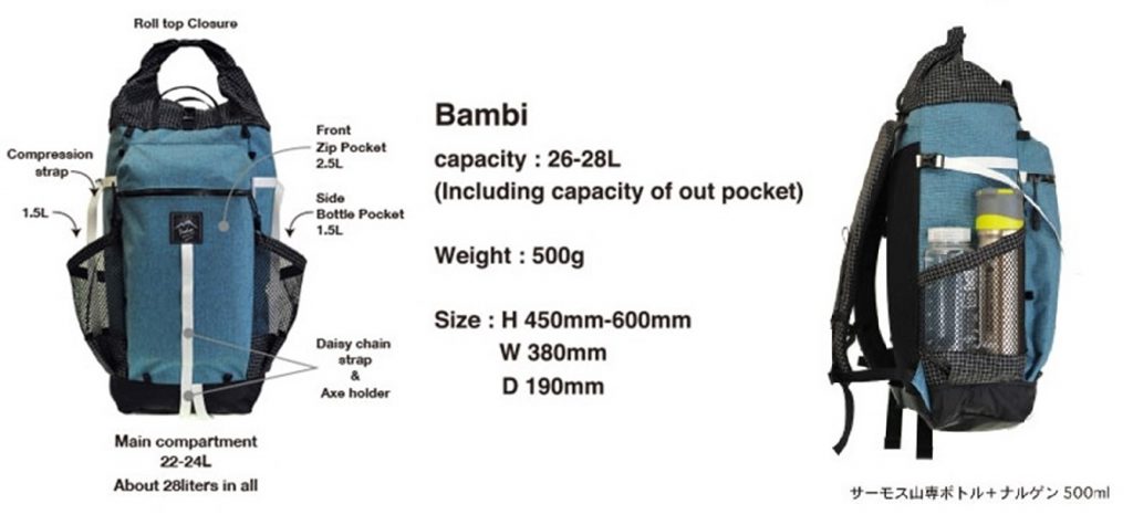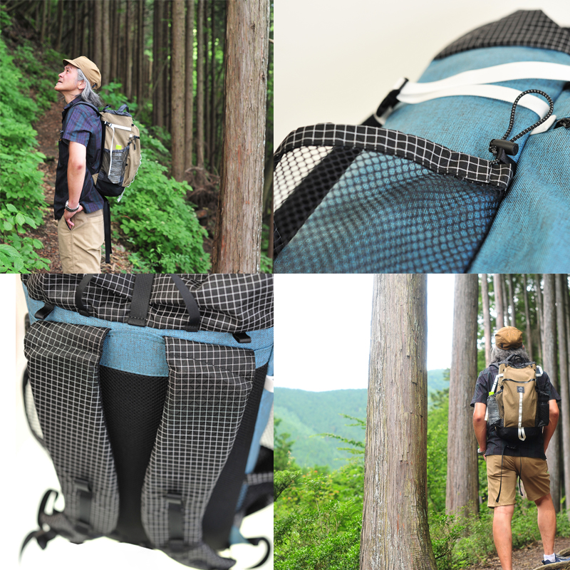 ambiはデイハイクから小屋泊、ちょっと頑張ってUL装備ならテント泊まで、使い勝手の良いサイズの中型バックパックです。Back to Basicというコンセプトでギミック等は一切なしですがそのぶん徹底的にサイズ感と使い勝手、そして背負い心地に拘りました。