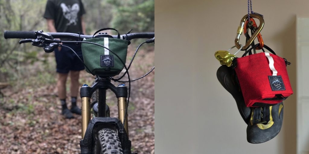 チビチビトート、実はチョークバッグにも使えるサイズにしてあります。ショルダーストラップが取り外し可能なのでハンドルにカラビナを掛ければウエストに装着できます。