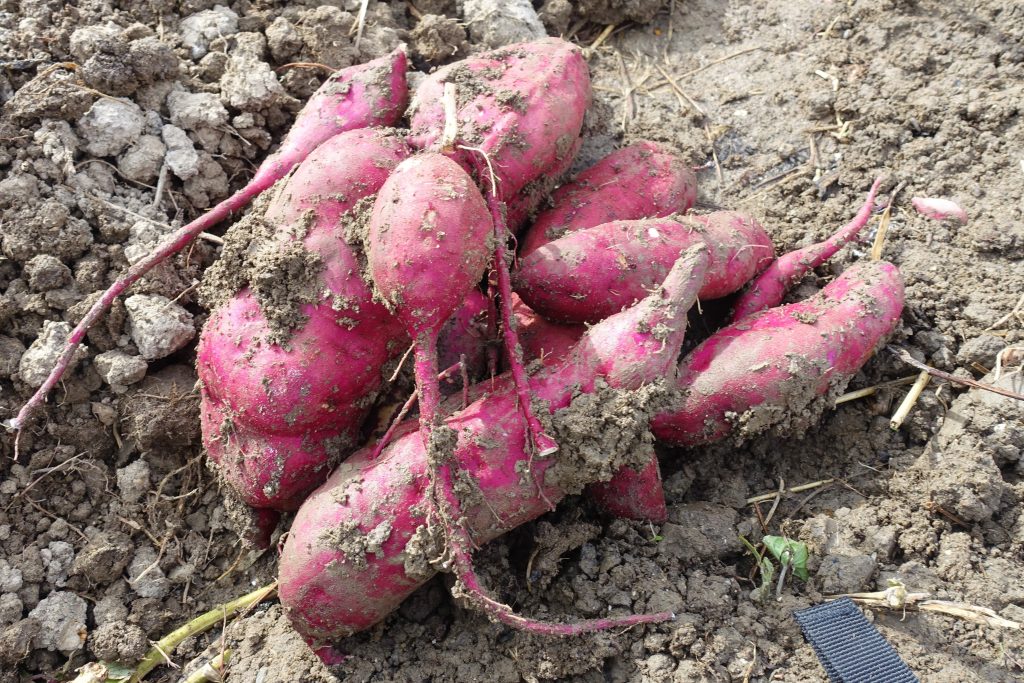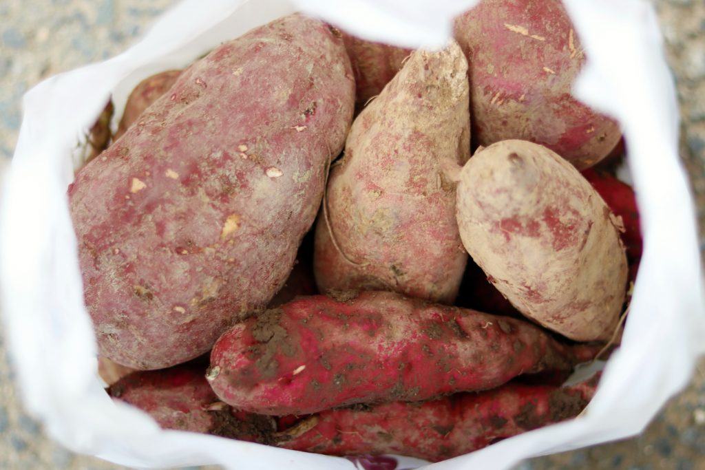 お陰様で、スーパーでは並ばない良い意味で売り物にはないような野性味あふれる大小さまざまな形の芋が掘れました!