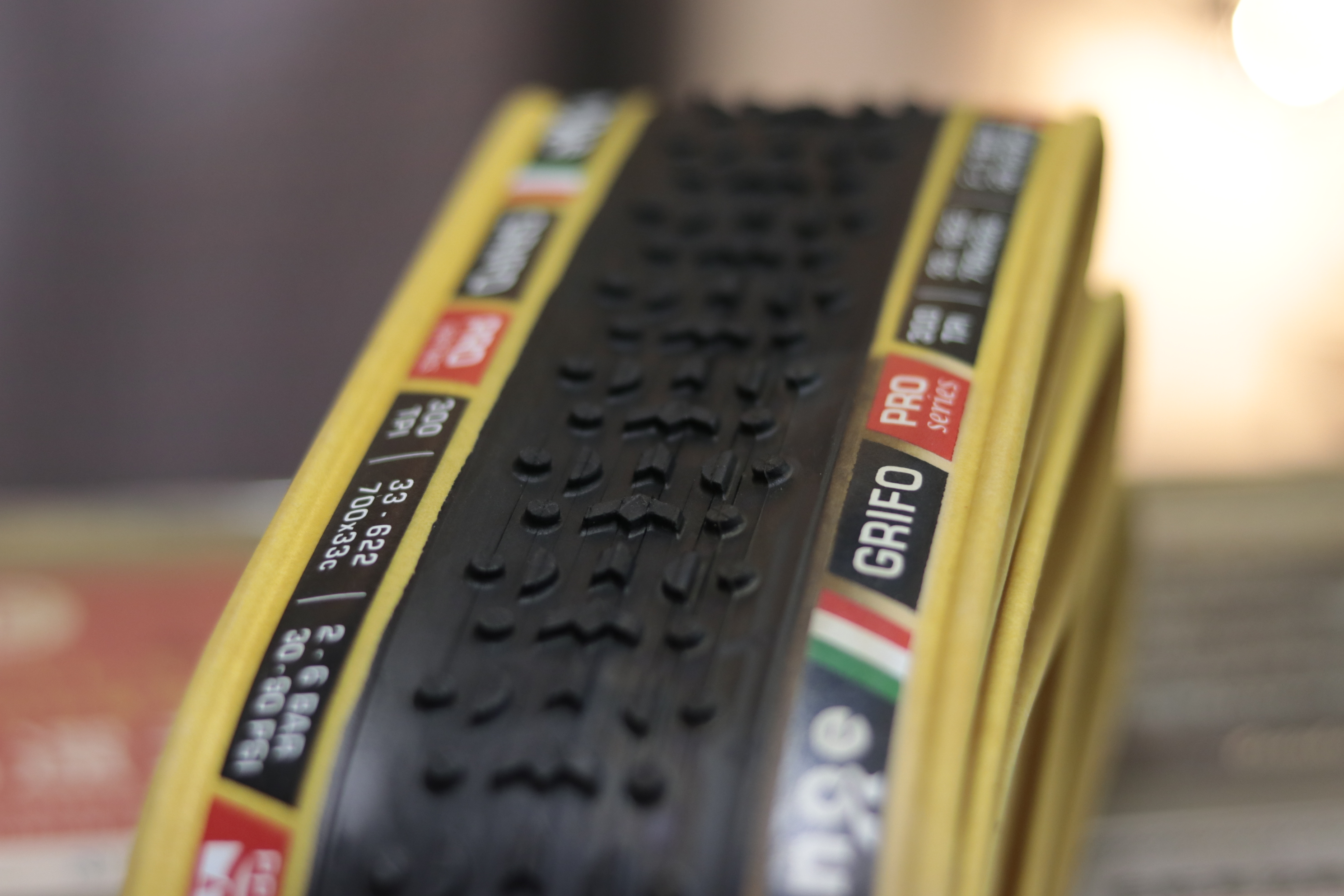 GRIFOXSとLIMUSからトレッドパターンを採用しており直線は抵抗が少なく軽く走れるように、それでいてコーナリングではウェットコンディションでも優れたグリップという事で我々のような長いオンロードのアプローチからグラベルロードに入るような使い方には持ってこいです。
