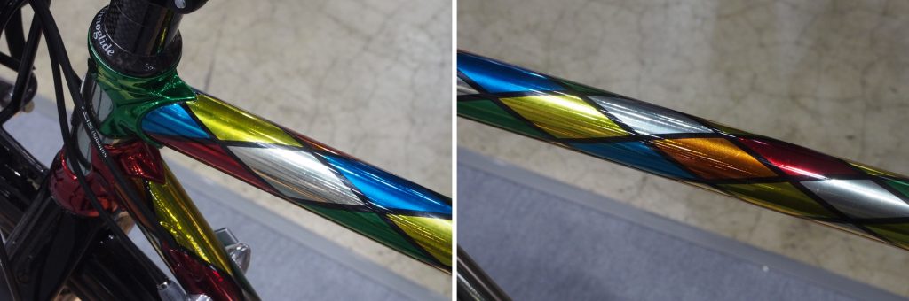 フレームの溶接~ペインティングまで。所謂工程全てを目の届く範囲で一貫して自社製作されており、画像をご覧いただいてもお分かり頂けるかと思いますが、ペイント含めそのフレームワークのクオリティの高さは画像を見ての通り!わざわざ言葉を使って説明するまでもありませんね!