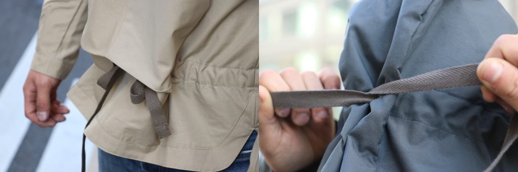 ジップの締め具合によって、シルエットに変化を付けられるんです。