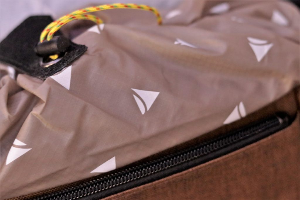 バッグ内部には仕切り/ポケットを兼ねたゴムベルトが仕込んであり、常にコンプレッションがかかっているので荷物が少ない時はバッグが小さく縮んでスマートな見た目を維持してくれます◎