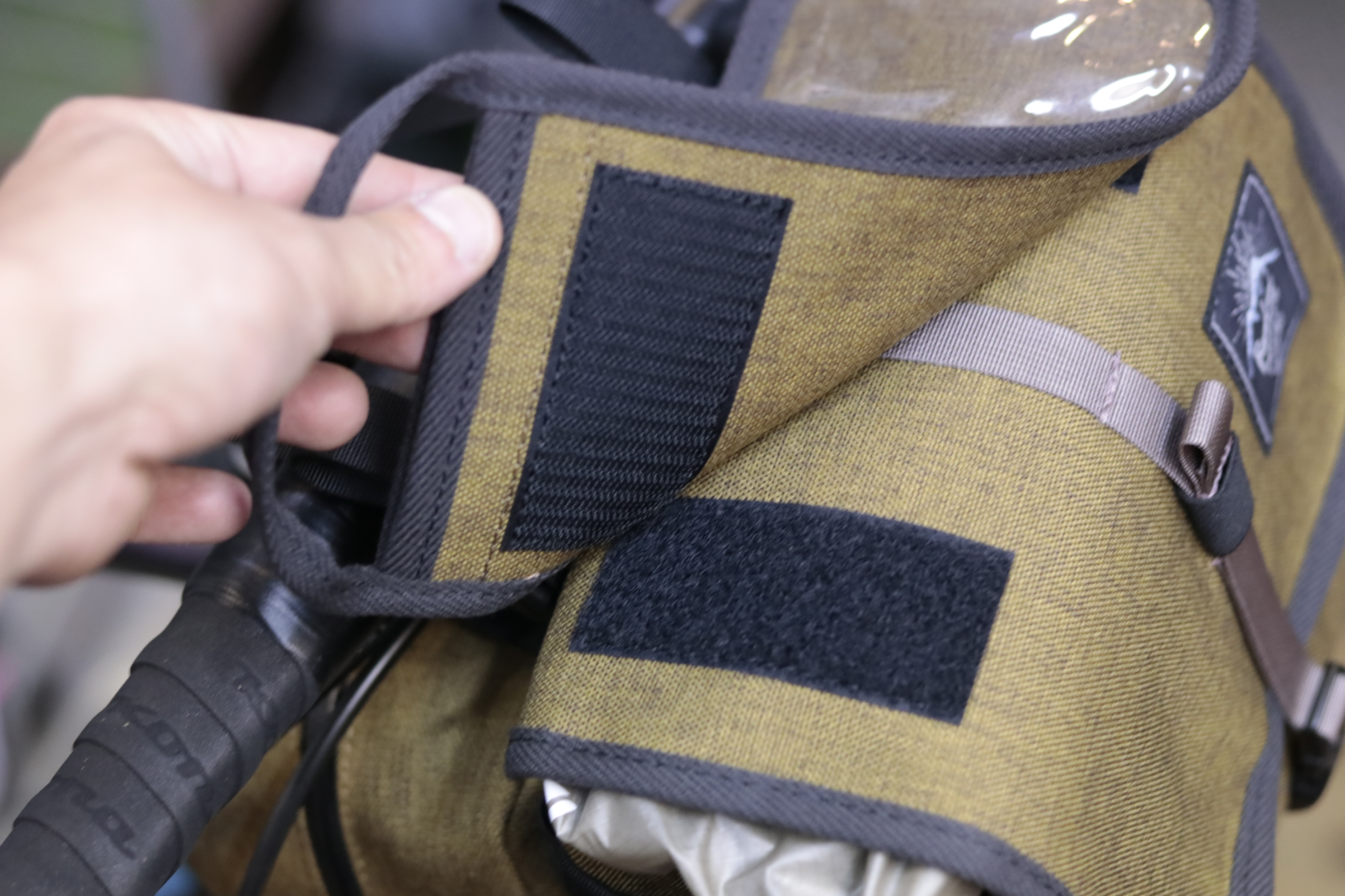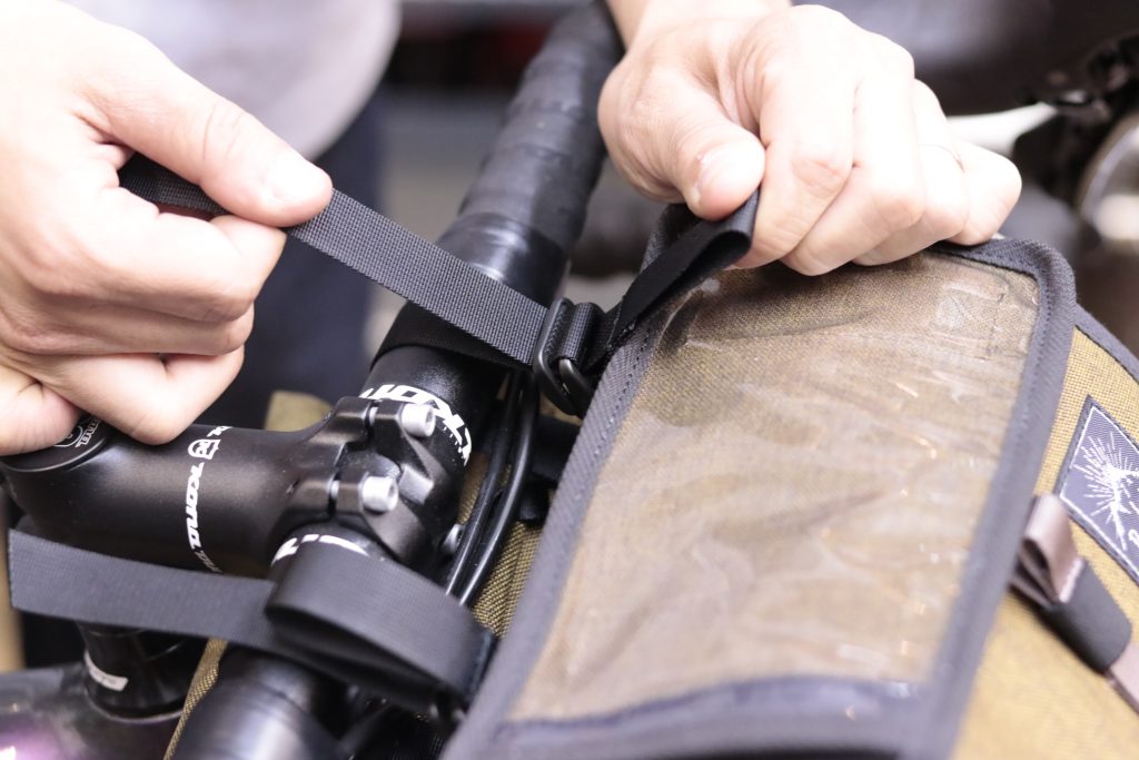 一番負荷のかかるハンドルバーにマウントするメインストラップがWバックルとなっており、荷物が重くても、グラベルで揺さぶられても緩みにくくなっています。