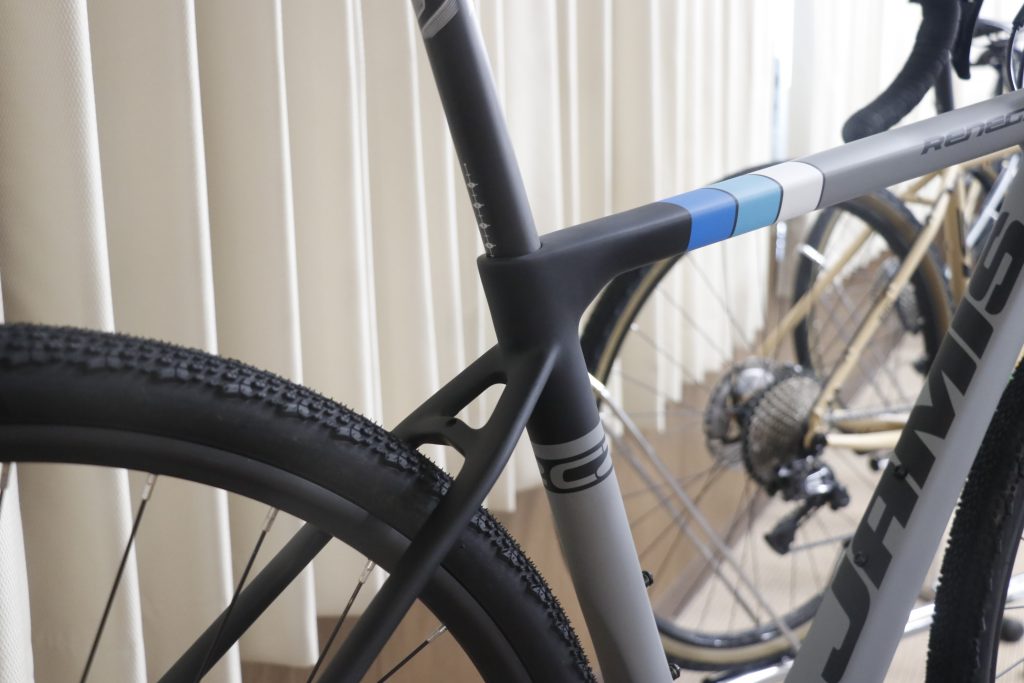 タイヤクリアランスもMAX700×40cとスチールモデルに比べると寸法を詰めた設計とする事で、軽さを活かした軽快なバイクに仕上がっています。
