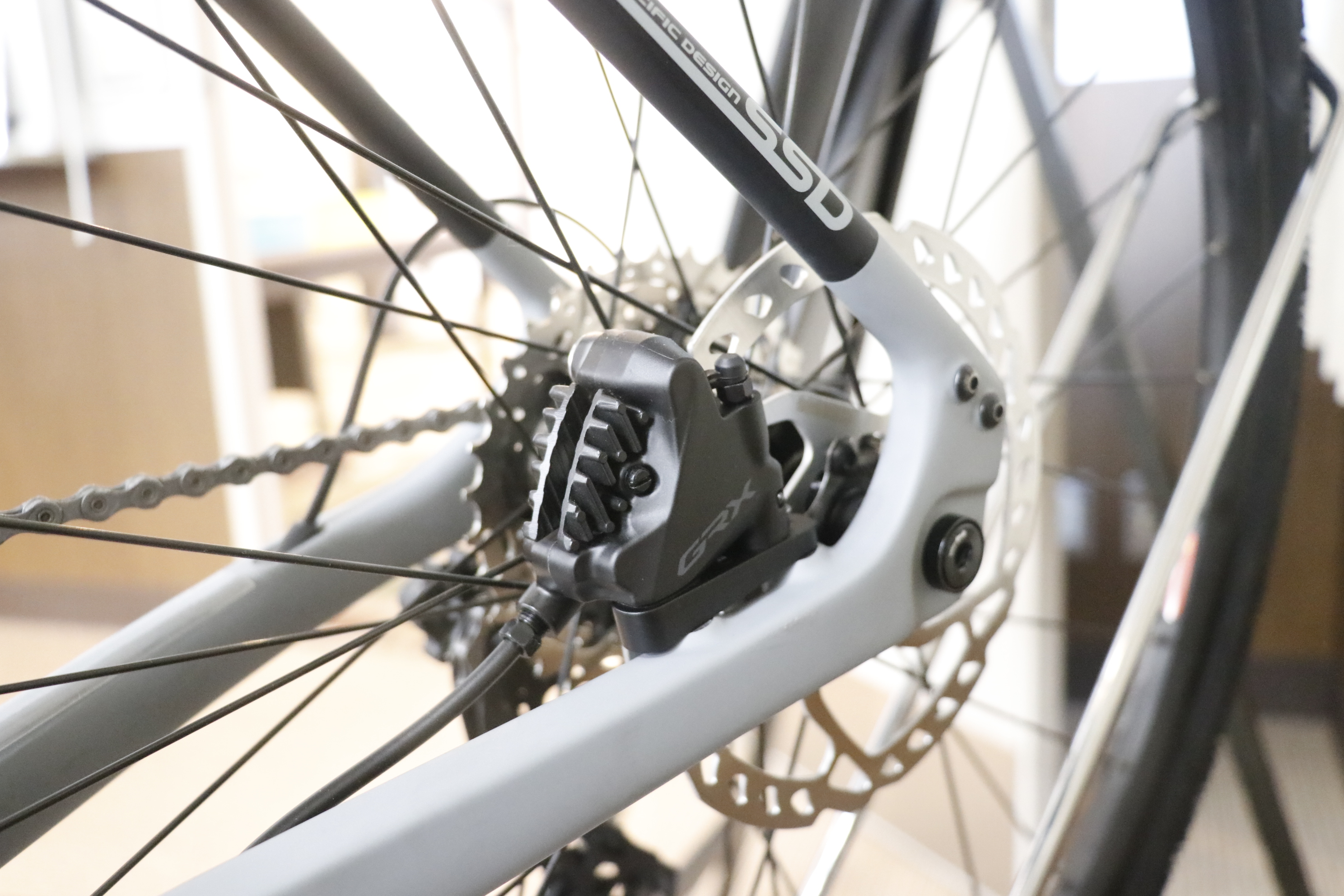 完成車重量9.3kgは充分に軽量で、ロードバイク的にオンロードでのロングライドも楽しめるスペックとなっています。
