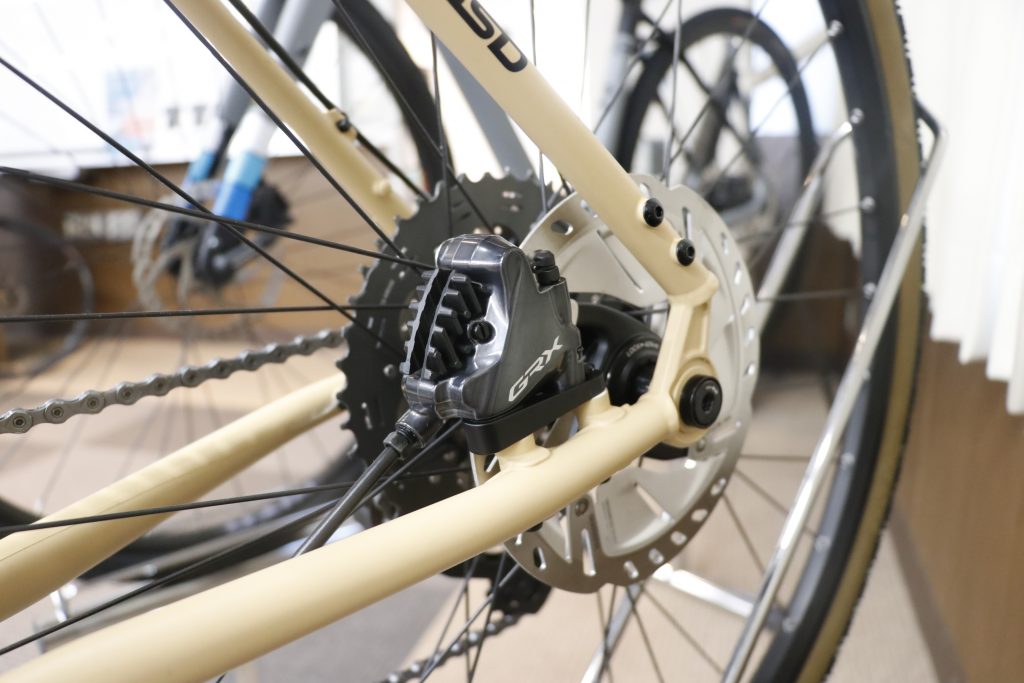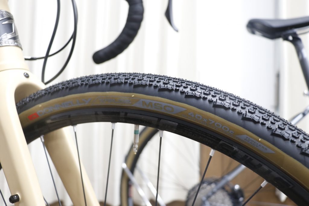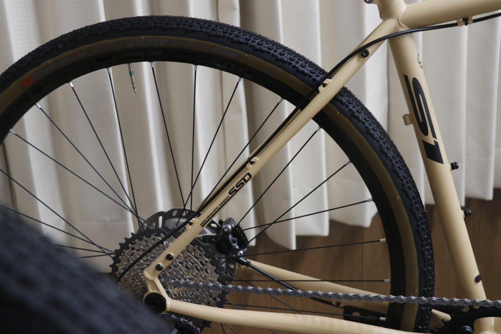 即グラベルを含むアドベンチャーライドが楽しめる仕様です。ブラウンサイドもフレームカラーとの相性バッチリ◎