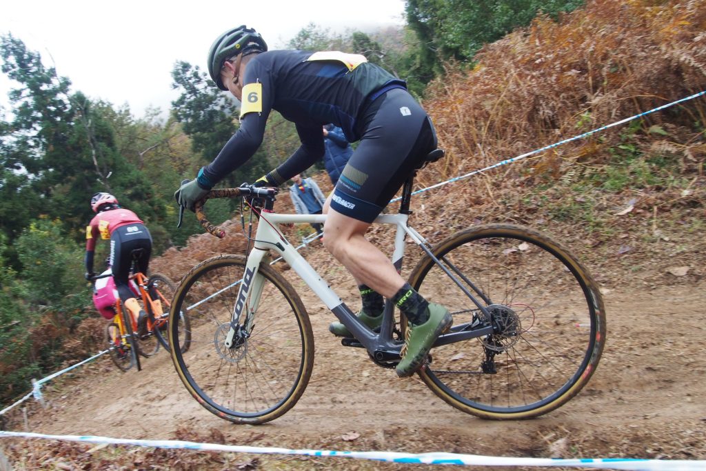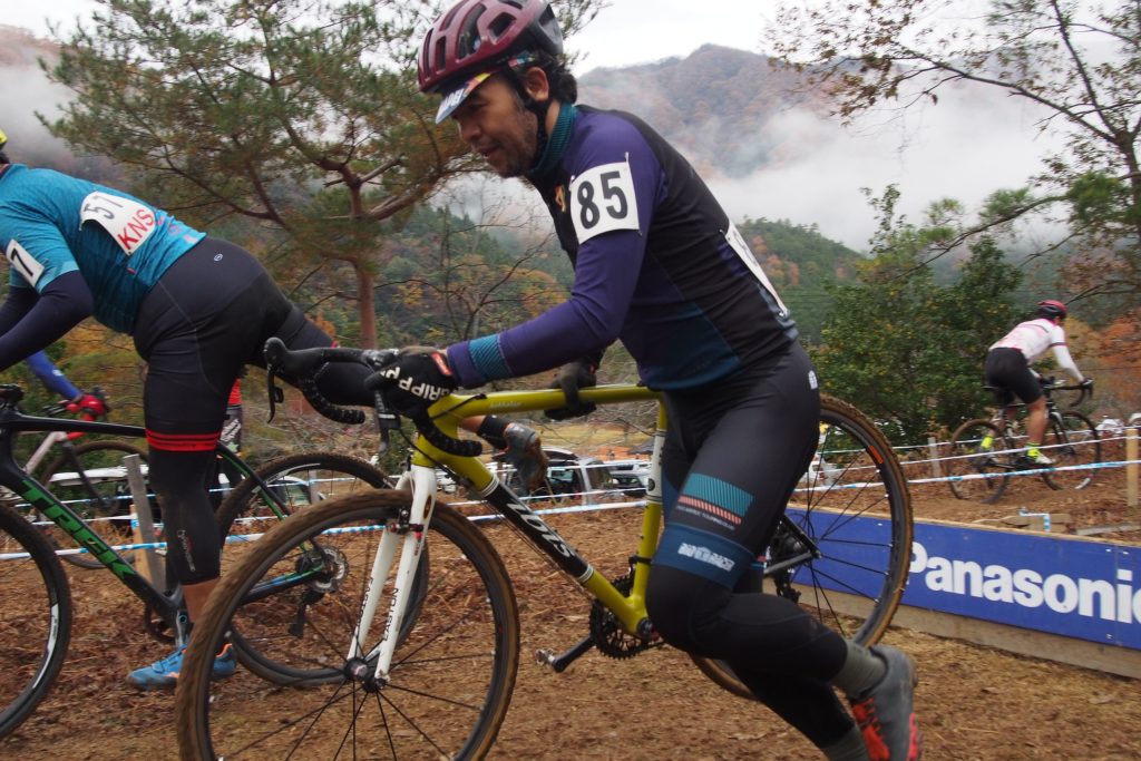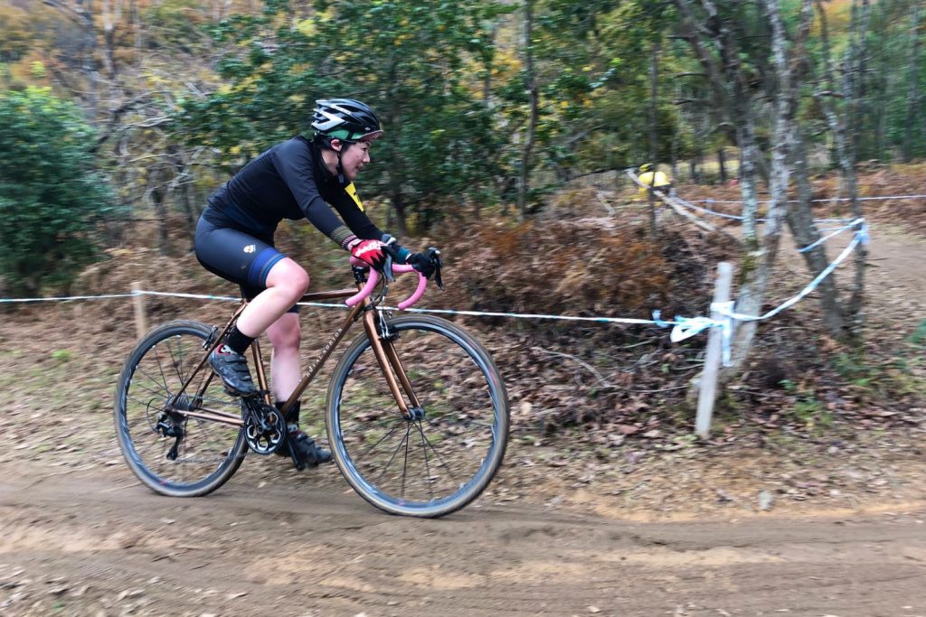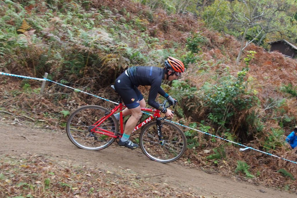 のクロモリシクロクロスに乗るFさん!が熱い走りを見せてくれました~!
