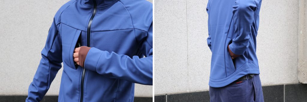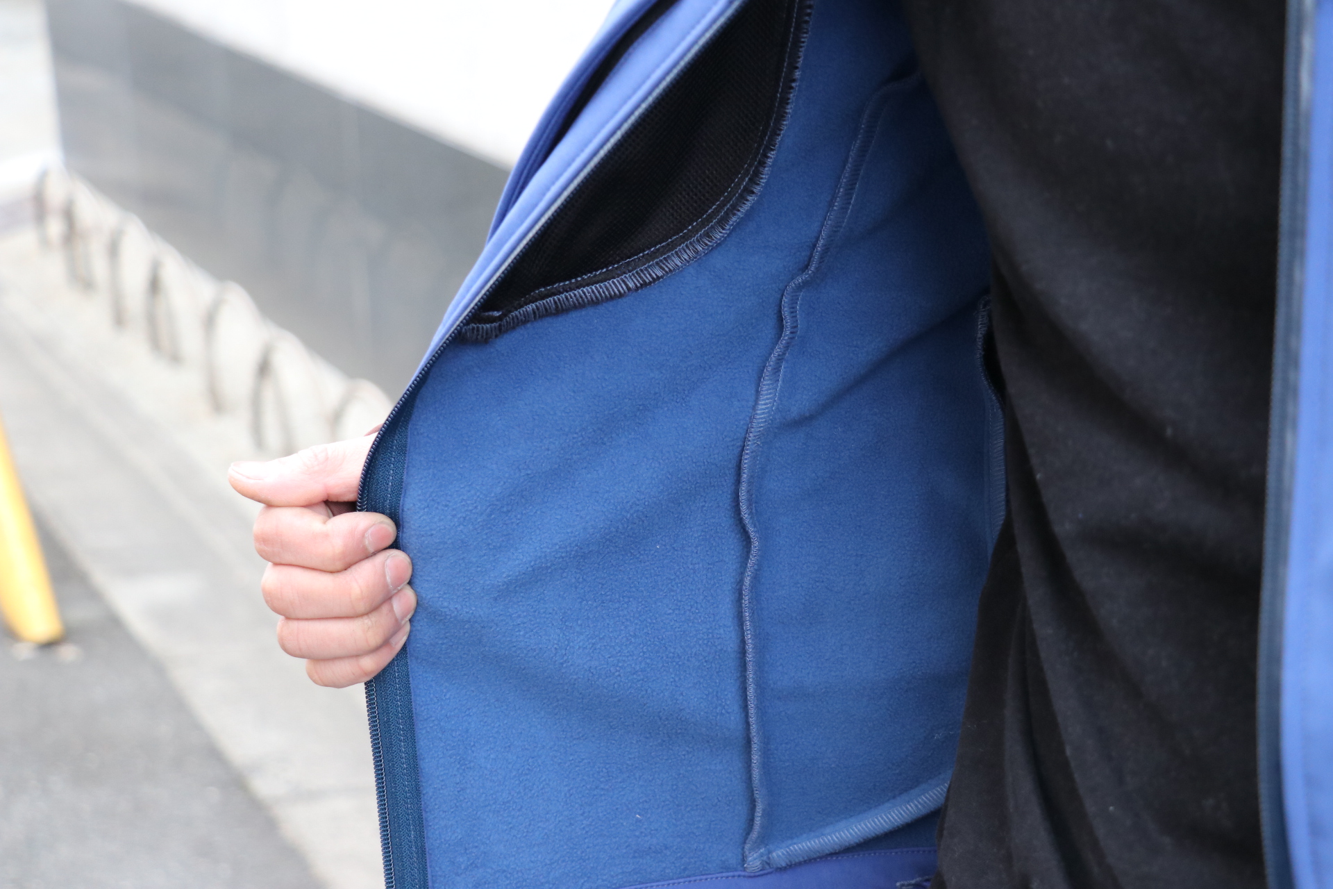 表は軽い撥水加工を施しており、多少の雨ならば安心。防風性も高くしっかり身体をガードしてくれます。