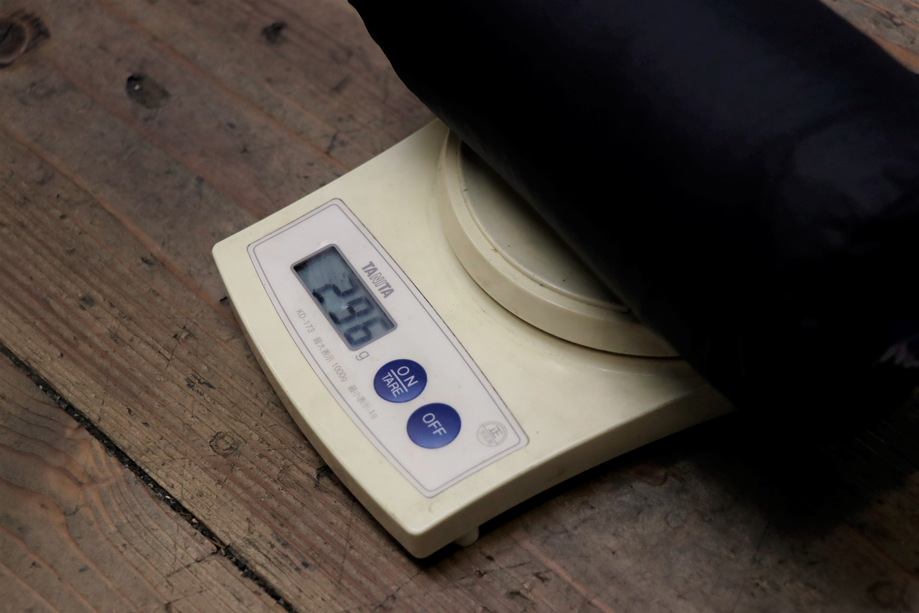 実にコンパクトな収納サイズ(本商品には収納袋が付属されます)&軽量性(実測296g*Lサイズ)