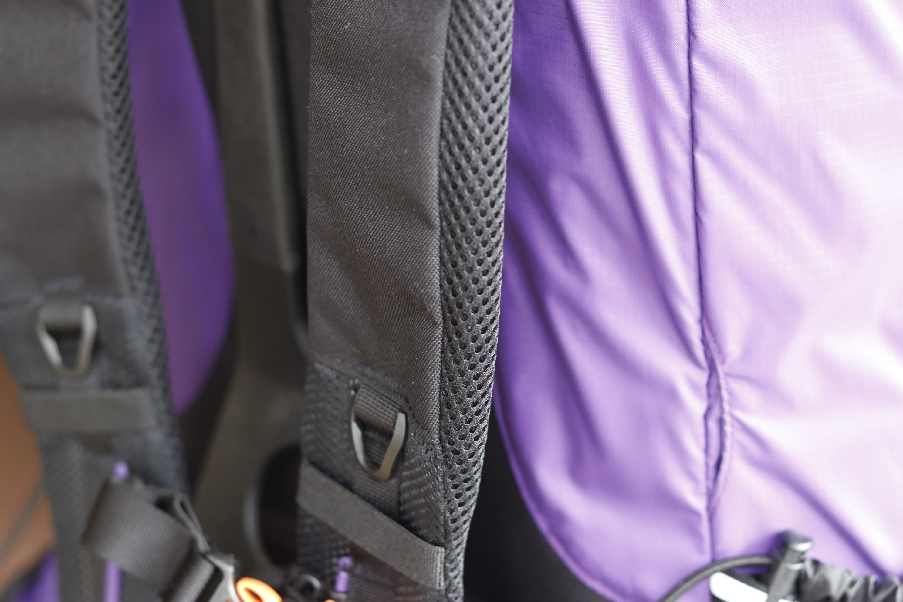 ショルダーやウエストのハーネスはしっかり肉厚のメッシュパッドなので、フィット感も良くストレスフリー◎