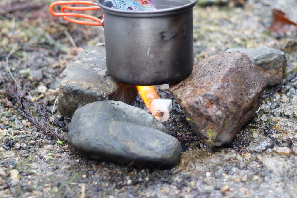 Esbitの固形燃料+即席かまどのワイルドなスタイルもありました◎