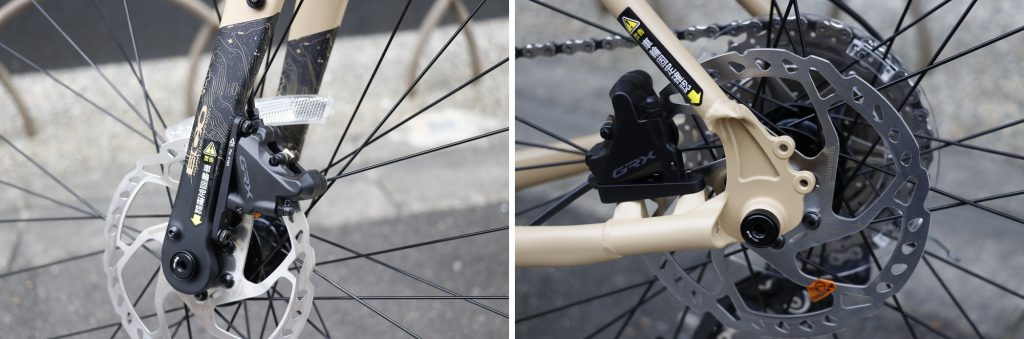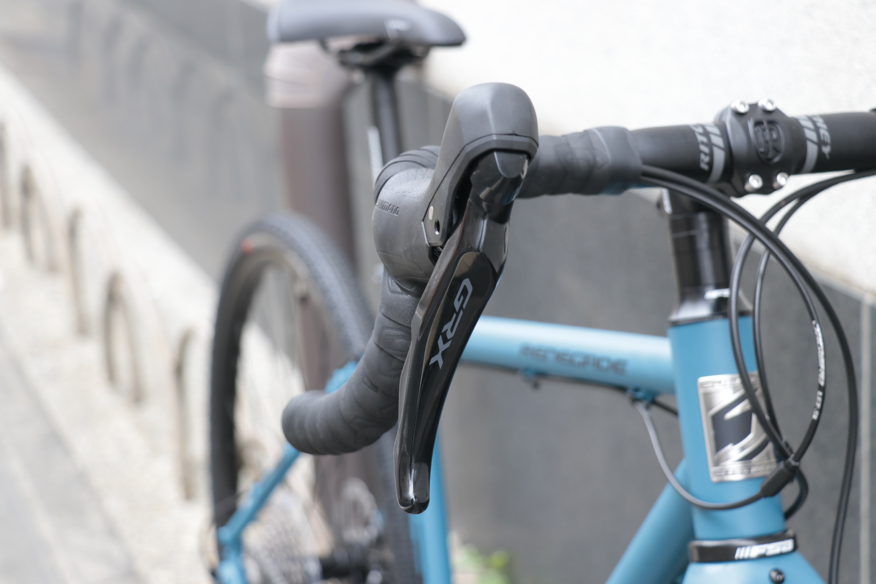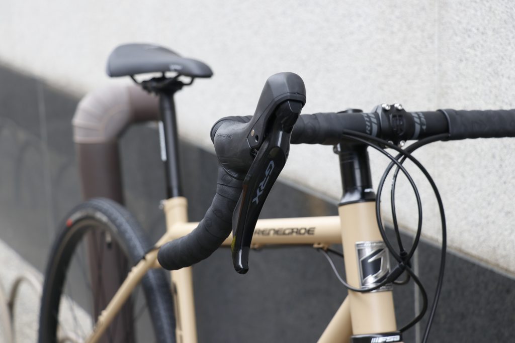 TIAGRAレベルに相当するshimanoグラベルコンポーネント「GRX 400系 *油圧ディスクブレーキ2×10スピード」をベースにアッセンブル