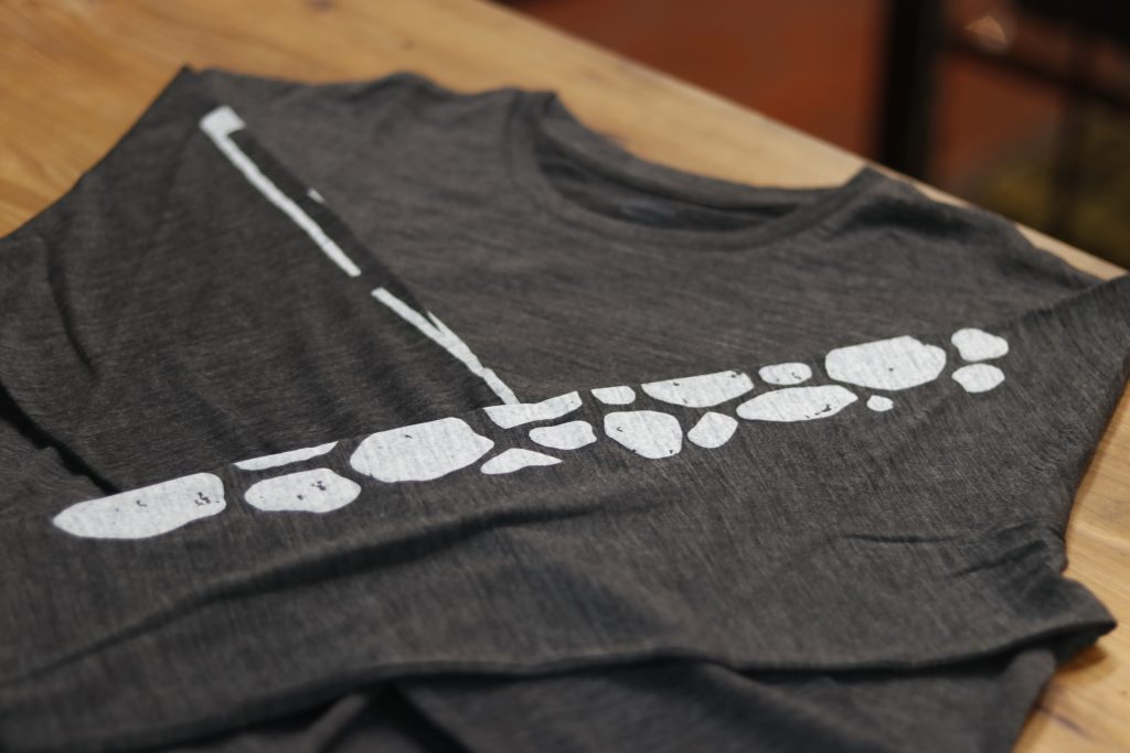 「右袖:石畳の遊歩道」x「左袖:アスファルトの自転車道」のグラフィックが配された、 ニュージーランド発ブランド”Icebreaker製”メリノウールロングTシャツ