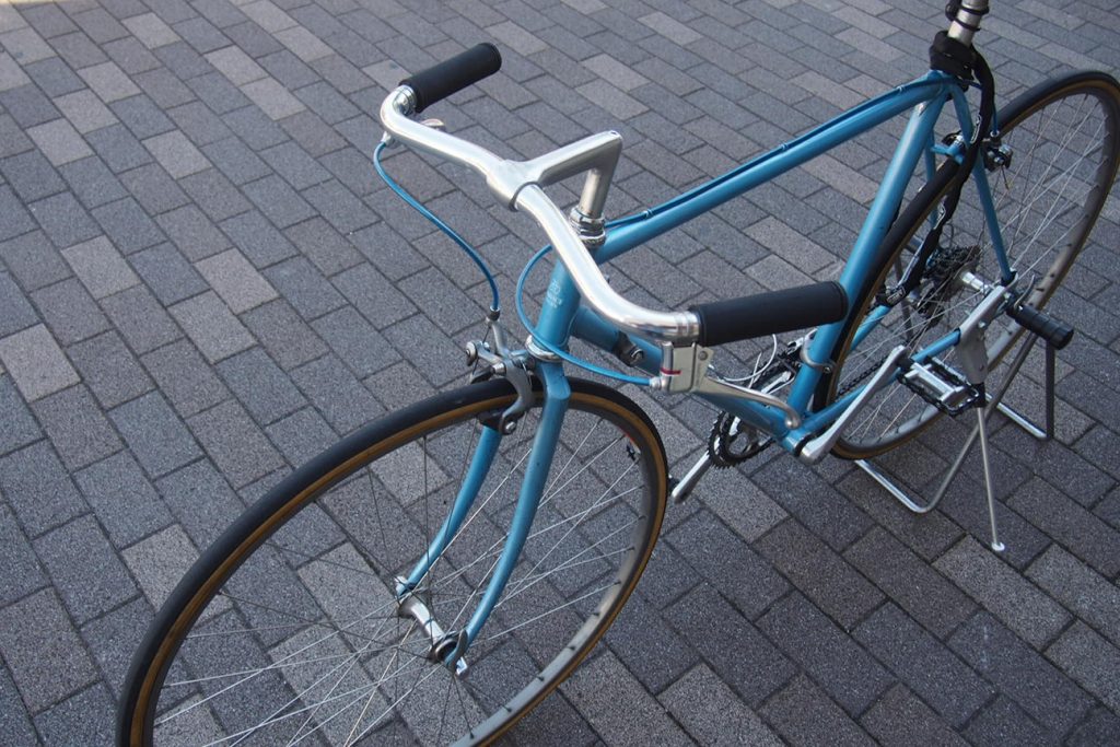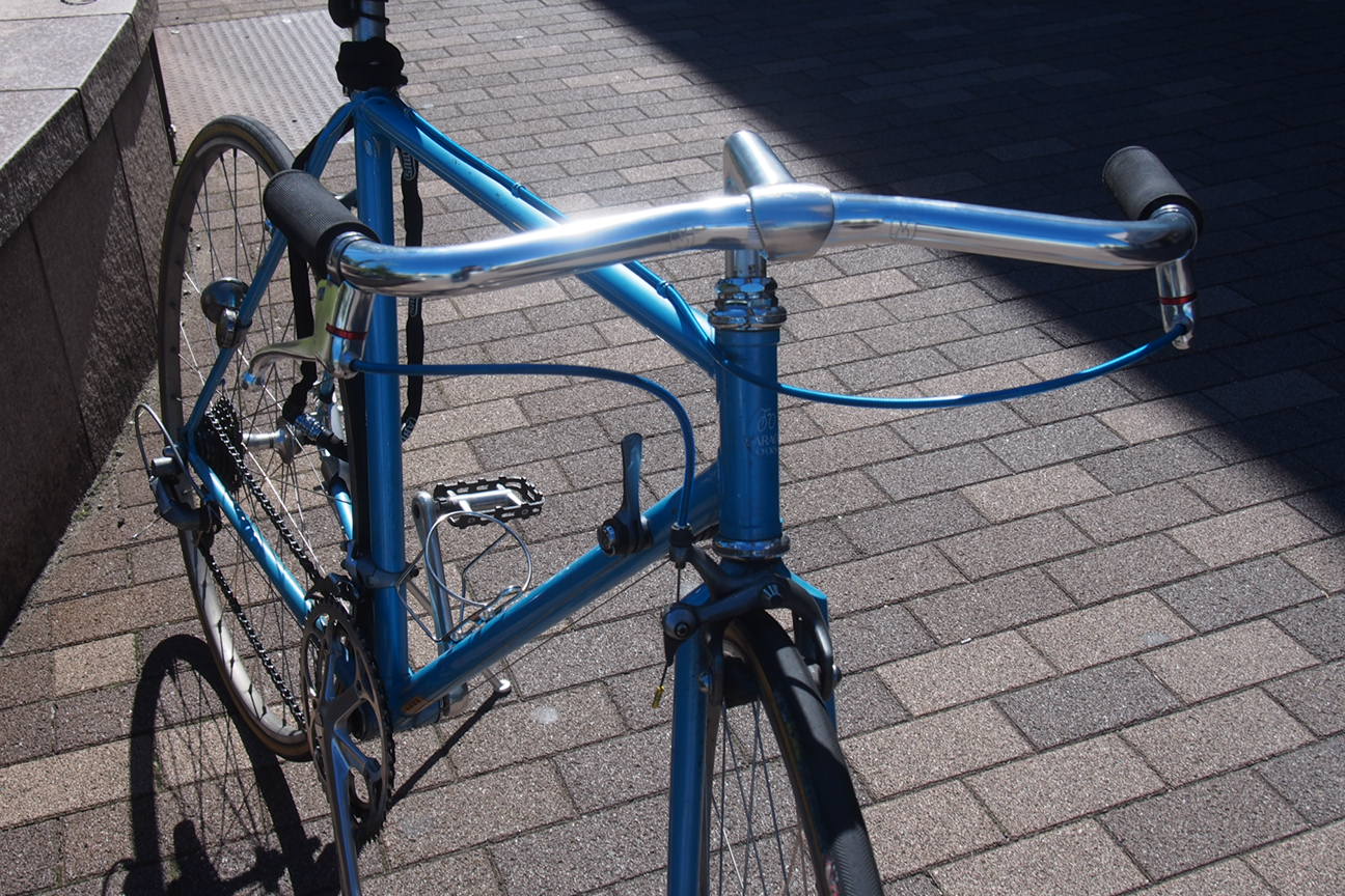 如何にもシャカリキなスポーツバイク然としたフォルムではなく、緩い雰囲気と絶妙なフォルムが何ともクロモリバイクに良く似合う本ハンドル。