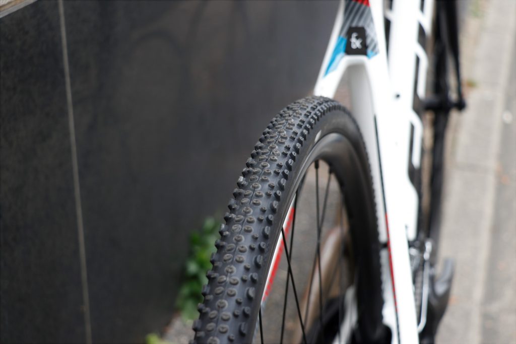 レギュレーションからタイヤサイズは700x33Cが採用されておりますが、泥はけ等の観点からタイヤクリアランス自体は38cくらいまで用意してくれているのでよりグラベル向きなアドベンチャー系タイヤの装着も可能です◎