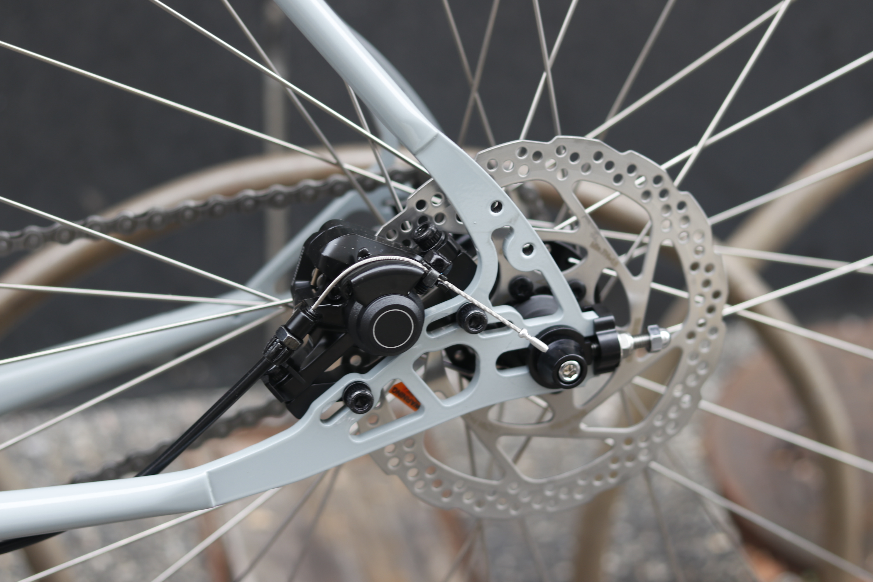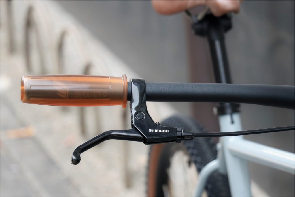 ロードバイク用のディスクキャリパーが使われているので、サクッとドロップハンドルにカスタム出来ていしまいます。