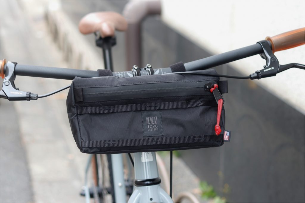 ロックや貴重品を入れるのに便利なハンドルバーバッグにはTOPO DESIGNS BIKE BAGをお選びいただきました。