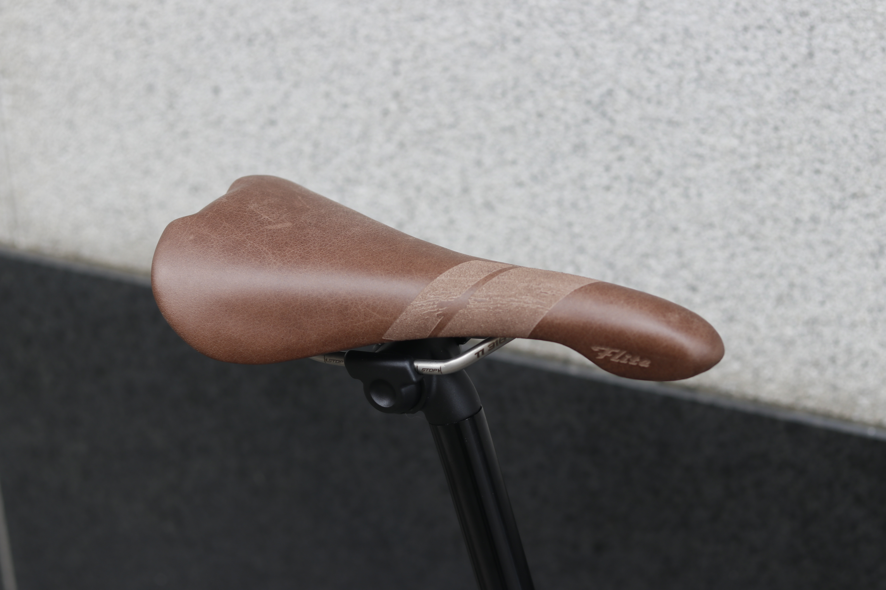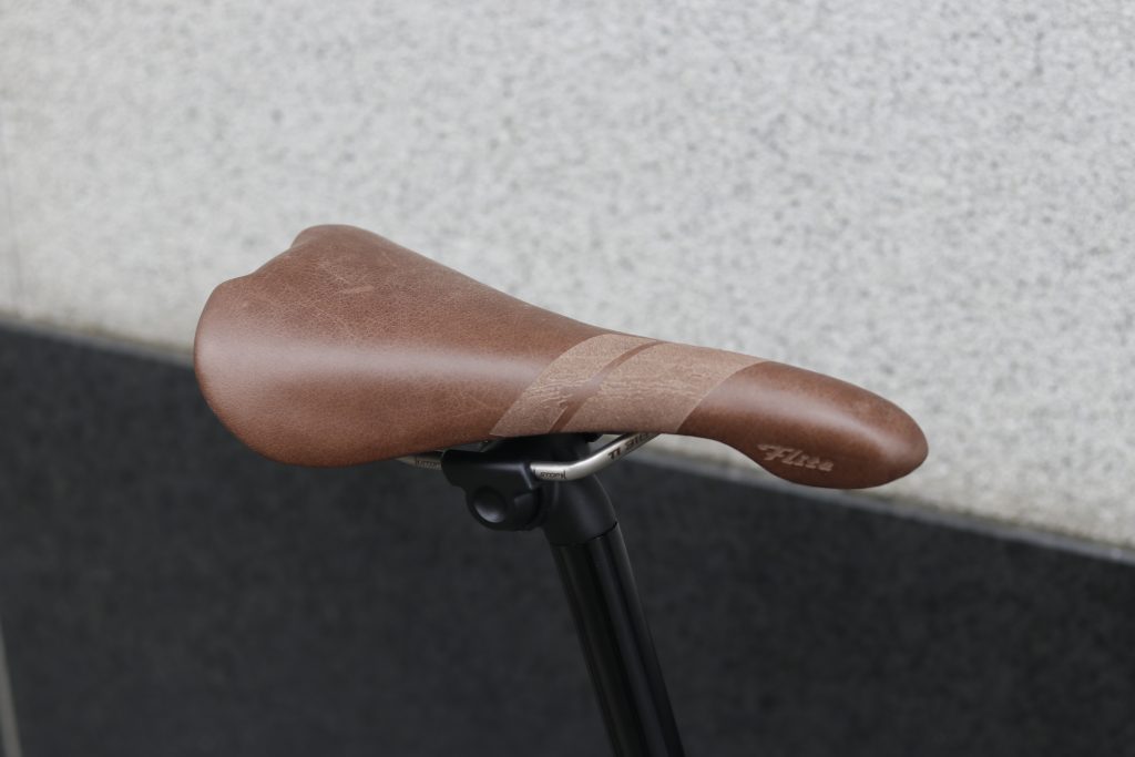 タイヤサイドとグリップに合せて、サドルもブラウンに。