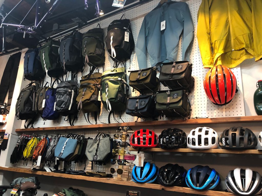 サイクルハテナでは店内展示替えで壁一面のRawLowMountainworksコーナーが出来ております◎カラーやモデル選びに是非遊びに来てください!