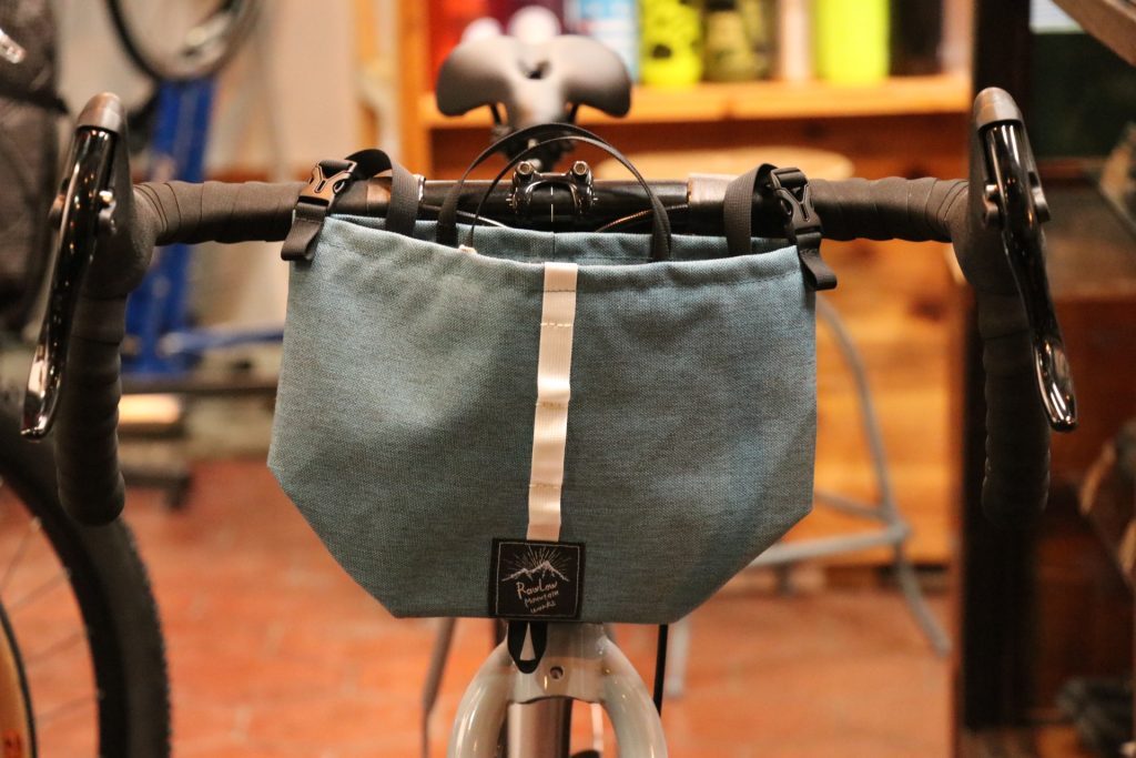 なお、TABITIBITOTEはその自由度高い作りもあって、自転車のハンドルバーバッグ的にも使えたりしますが、この時は従来の細目のベルトの方がよさそう◎