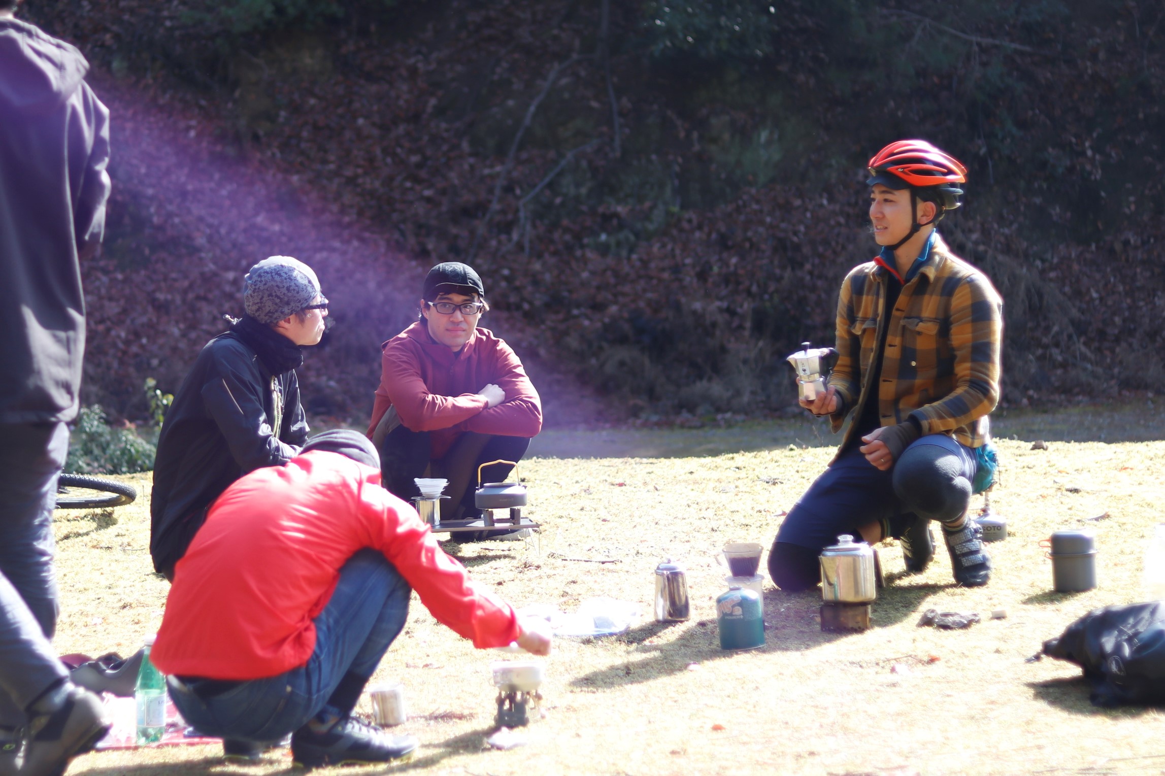日当たりの良い広場に到着したら、いざコーヒータイム!