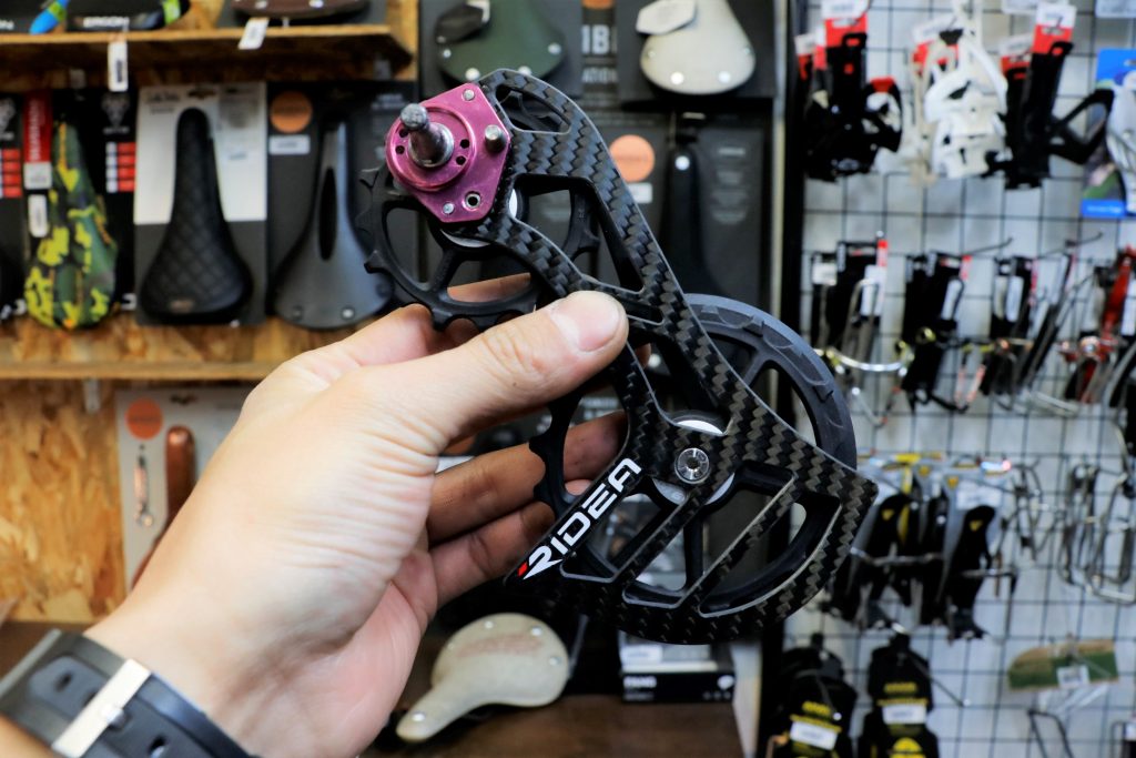 プーリーはカーボン製なので、見た目のボリューム感と裏腹にとても軽量です。