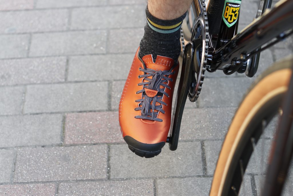 乗ればカーボンソールによるペダルロスの少ない走りが出来、歩けばVIBRAMソールで安心のグリップと本当にグラベル・ダートレース用シューズとしては完成度高くあります!