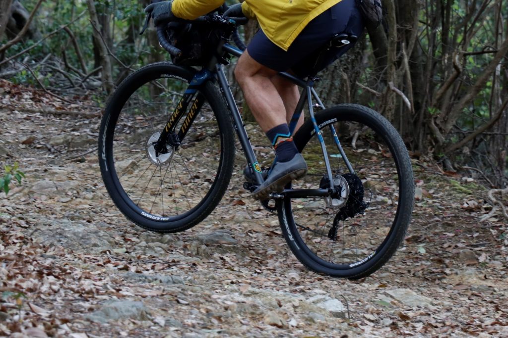 これが実に林道で活躍してくれました。ぎりMTB未満の太さとも言える50Cのタイヤ幅は、勿論下り区間での安定感は言わずもがなですが、登り区間も実に良い。