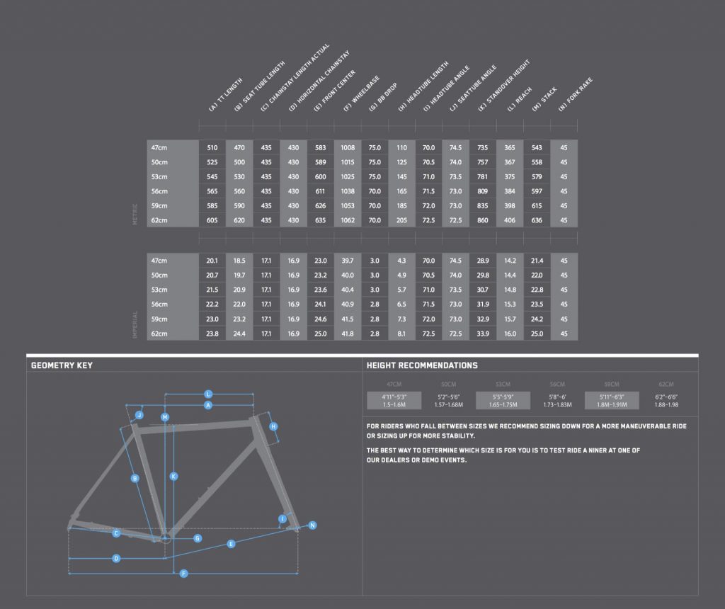 NINER RLT9 STEEL 主な商品説明、サイズ、スペックについて