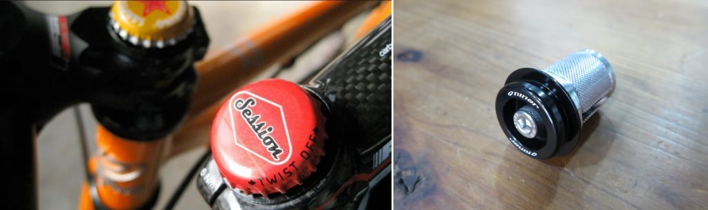 オリジナルのフォークコラムに取り付けるトップキャップは、なんと瓶ビールなどの蓋(王冠)を取付することが出来ます。