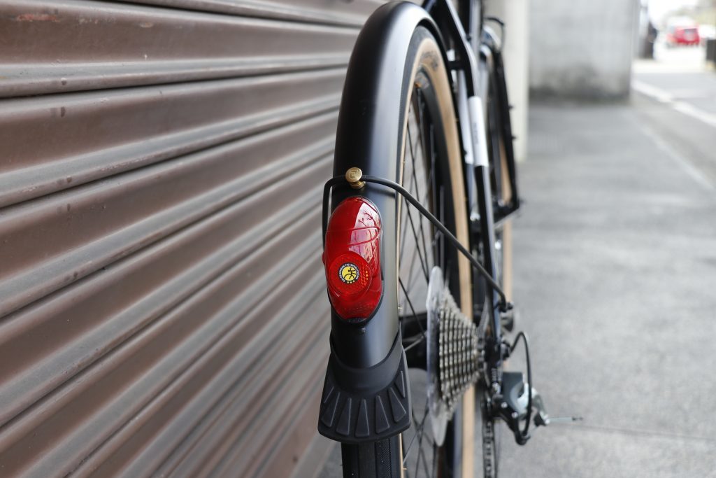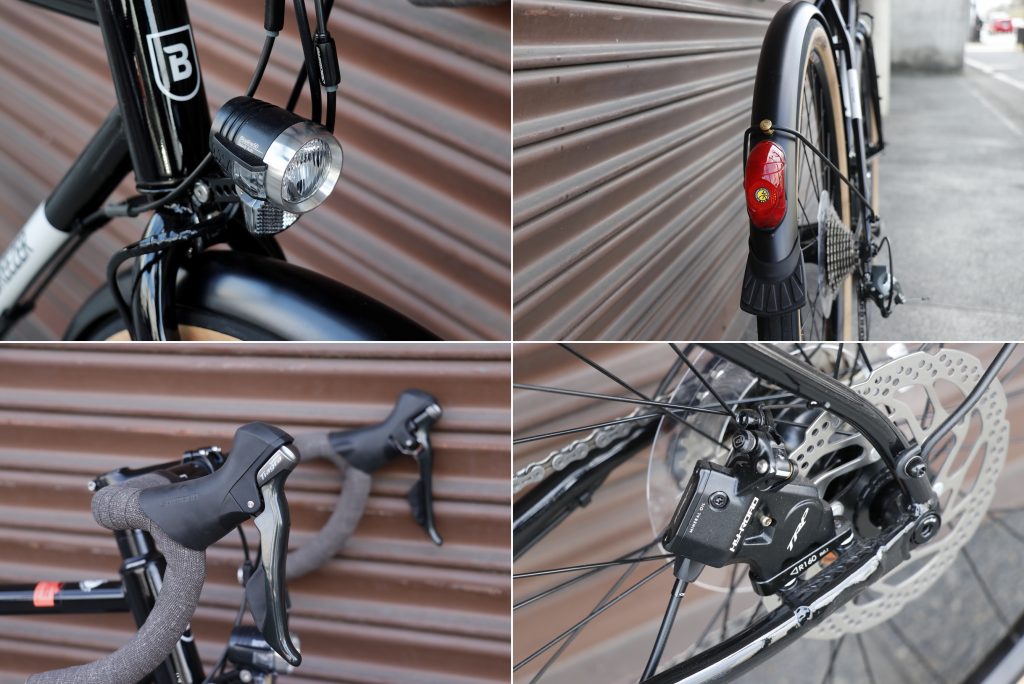 ドロップハンドル、650Bホイール、前後フェンダー、そしてハブダイナモ標準装備。