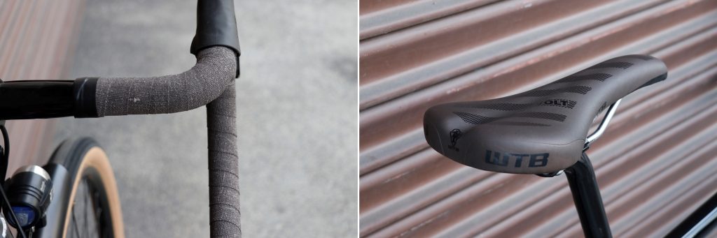 座り心地の良さに定評あるWTB製VOLTサドルに、キャンパス素材のバーテープ。スキンカラーサイドのタイヤ併せ、クラシカルな雰囲気も◎