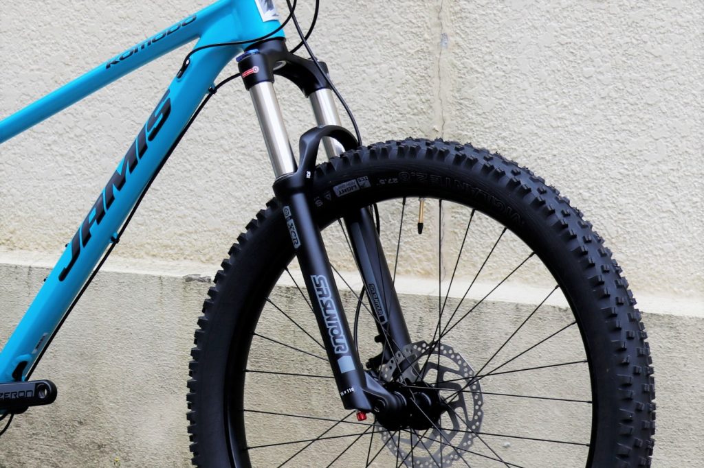 フォークには、エントリーグレードながらも軽量なエアーサスペンション機能が嬉しい「SR Suntour XCR」が採用。