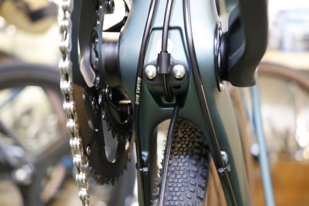 グレードはメンテナンス性を重視してシフト&ブレーキケーブルを外装としておりますが、ドロッパーシートポストのケーブルはBB裏から入り込んで、シートチューブ内を内蔵していくという秀逸な作り。これはかなり嬉しいGOODアイデアですね!