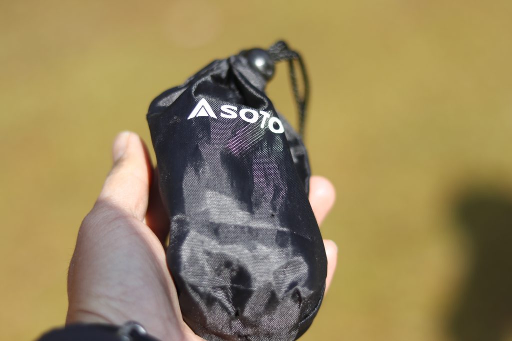 専用の収納袋も付属し、一般的なコッヘルセットの中にOD缶と共に収納する事も可能なので、実質荷物の容積が増えない優れもの。